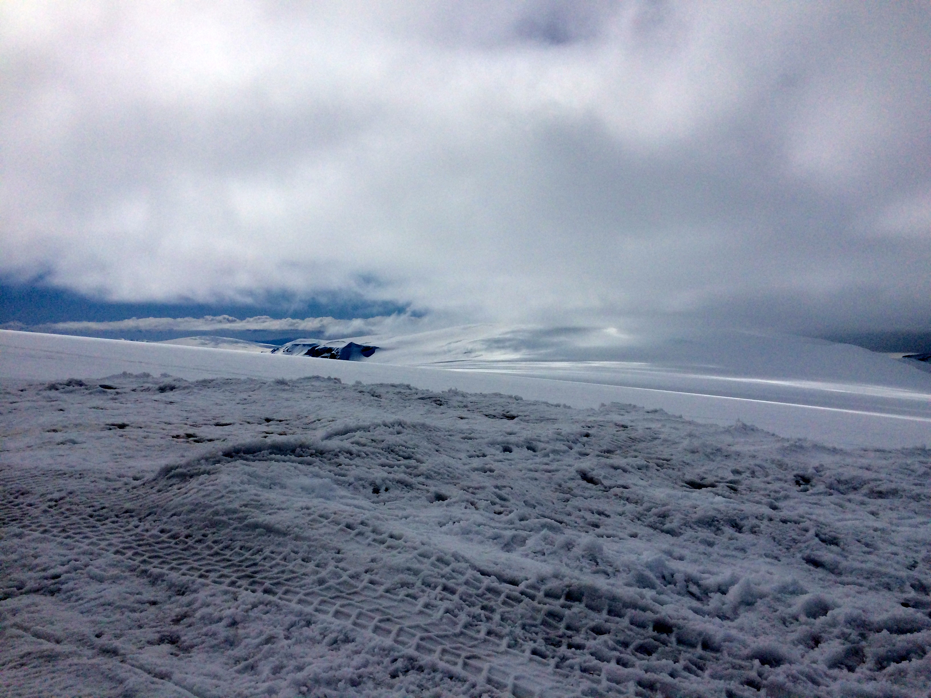 Suddenly, the first signs of snow approach. Like a Pollock painting, the white is splattered across the brown landscape. The patches increase in frequency, until eventually the whole painting is reversed: a white canvas with only dribbles of brown. At some indistinguishable point, colour disappears completely. We’ve gone glacial.