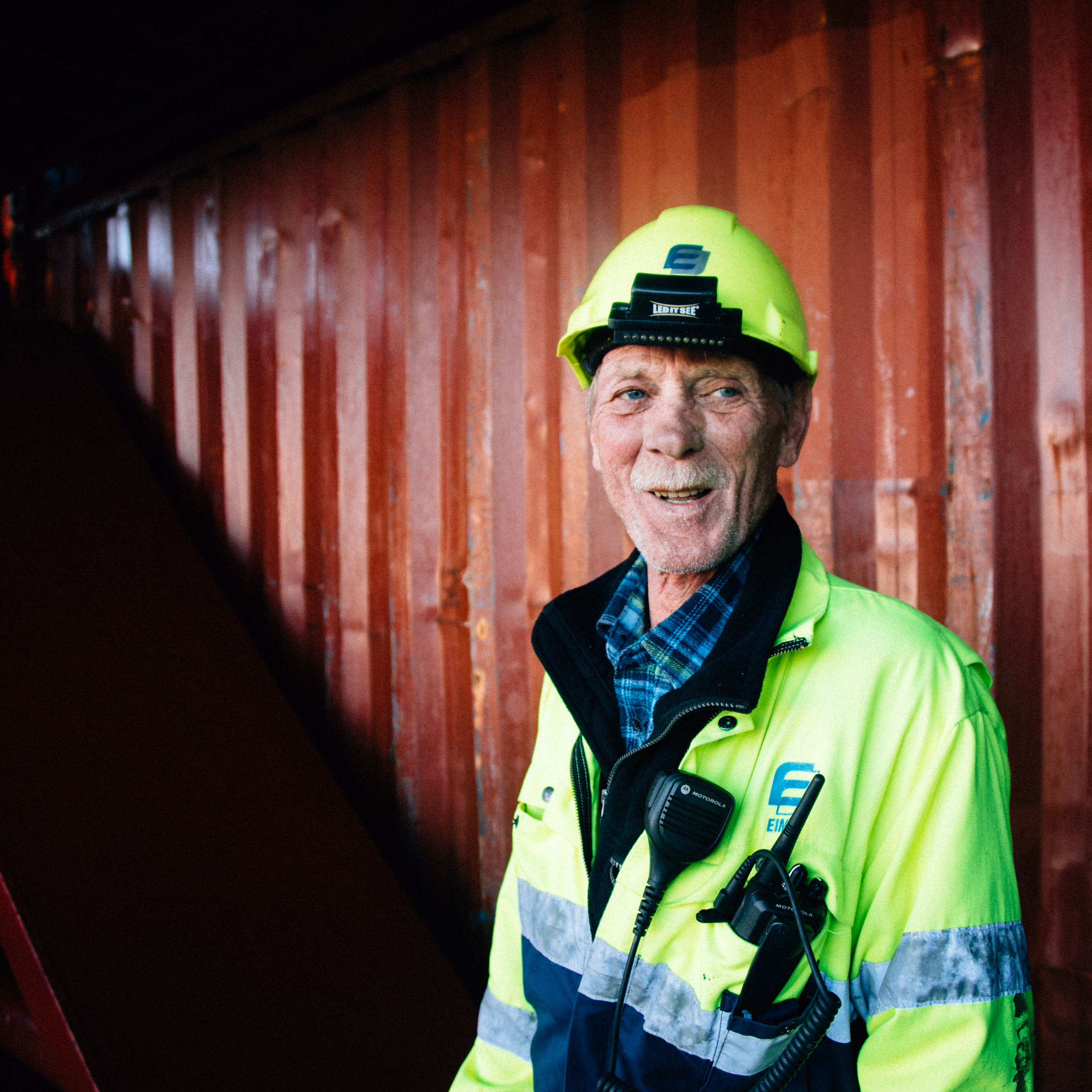 Jóna is a natural storyteller and, after a small ritual, she can read your fortune from a coffee stained mug. Her granddaughter calls her Grandma Dragon so she got a tattoo on her back of a dragon with “Amma Dreki” in an old-English font above it. And in a somewhat harrowing tale, Jóna lost her left middle finger after a codfish bit her while working on a fishing trawler. The resulting infection was so bad she almost lost her whole arm. In many ways though, the plethora of middle finger jokes now available to her paired with that constant reminder of the dangerous sea, is a perfect metaphor for the duality of both life and work found on a container ship.