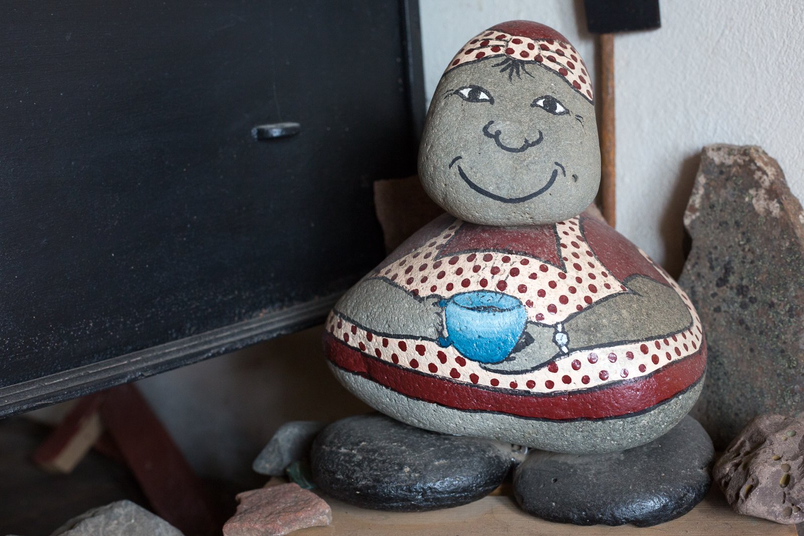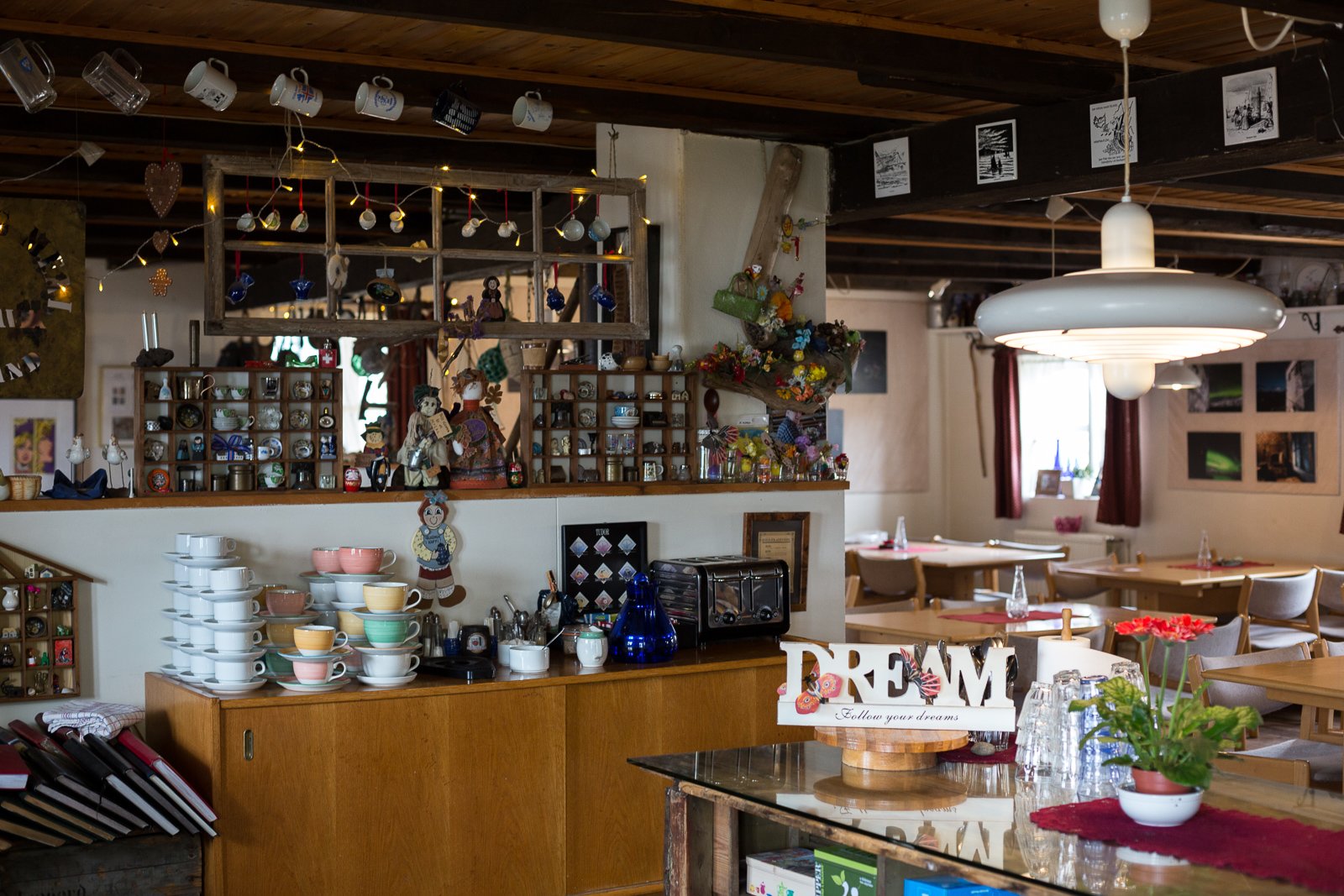 Upon entering the hotel, housed in a building that was once the factory workers’ quarters, you find yourself in a cosy lobby and dining hall, where walls and shelves are tastefully crammed with all kinds of bric-a-brac. Eva, who exudes a calm and kind presence, is busy in the kitchen as it’s approaching dinnertime, but allows for a short-ish interview.