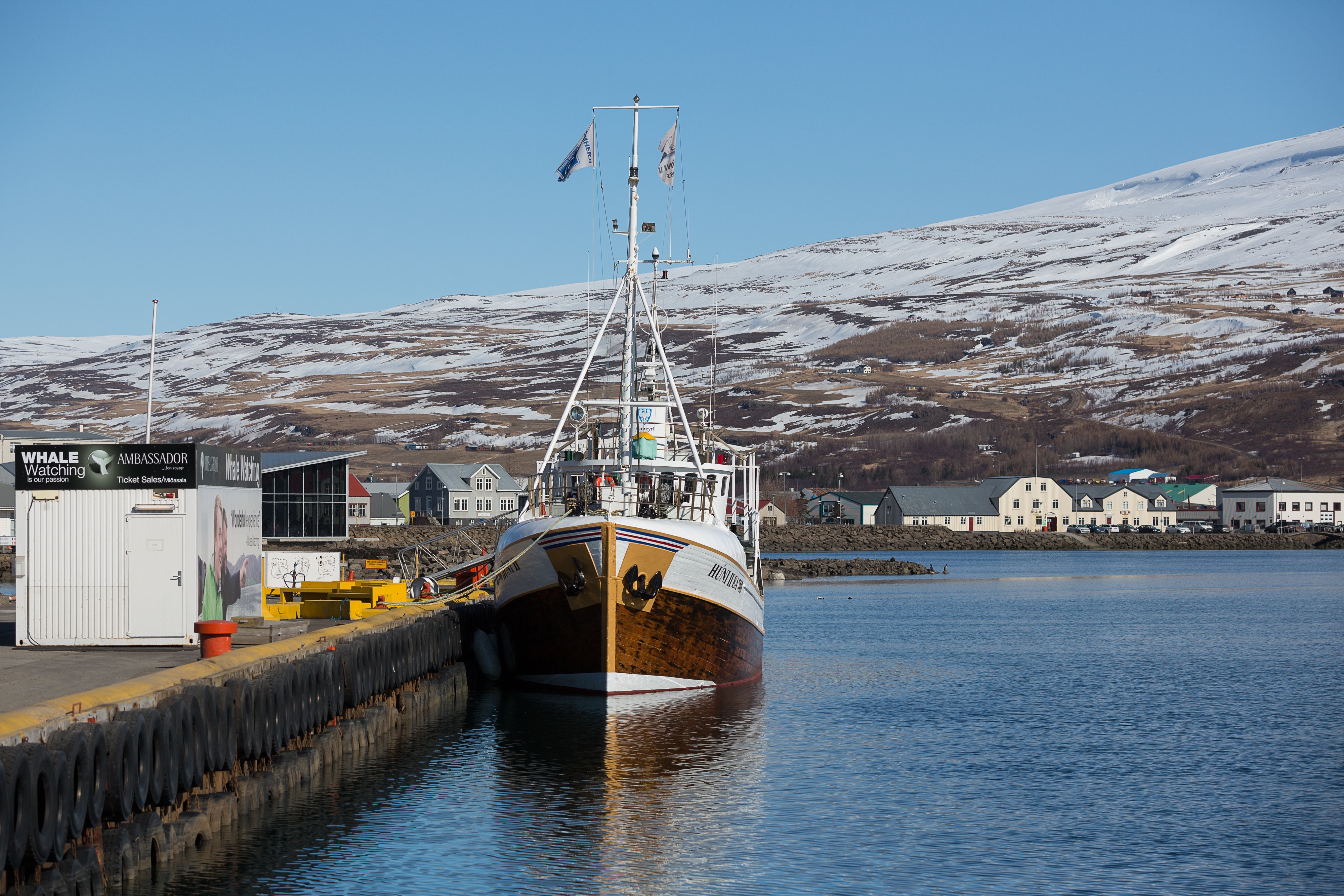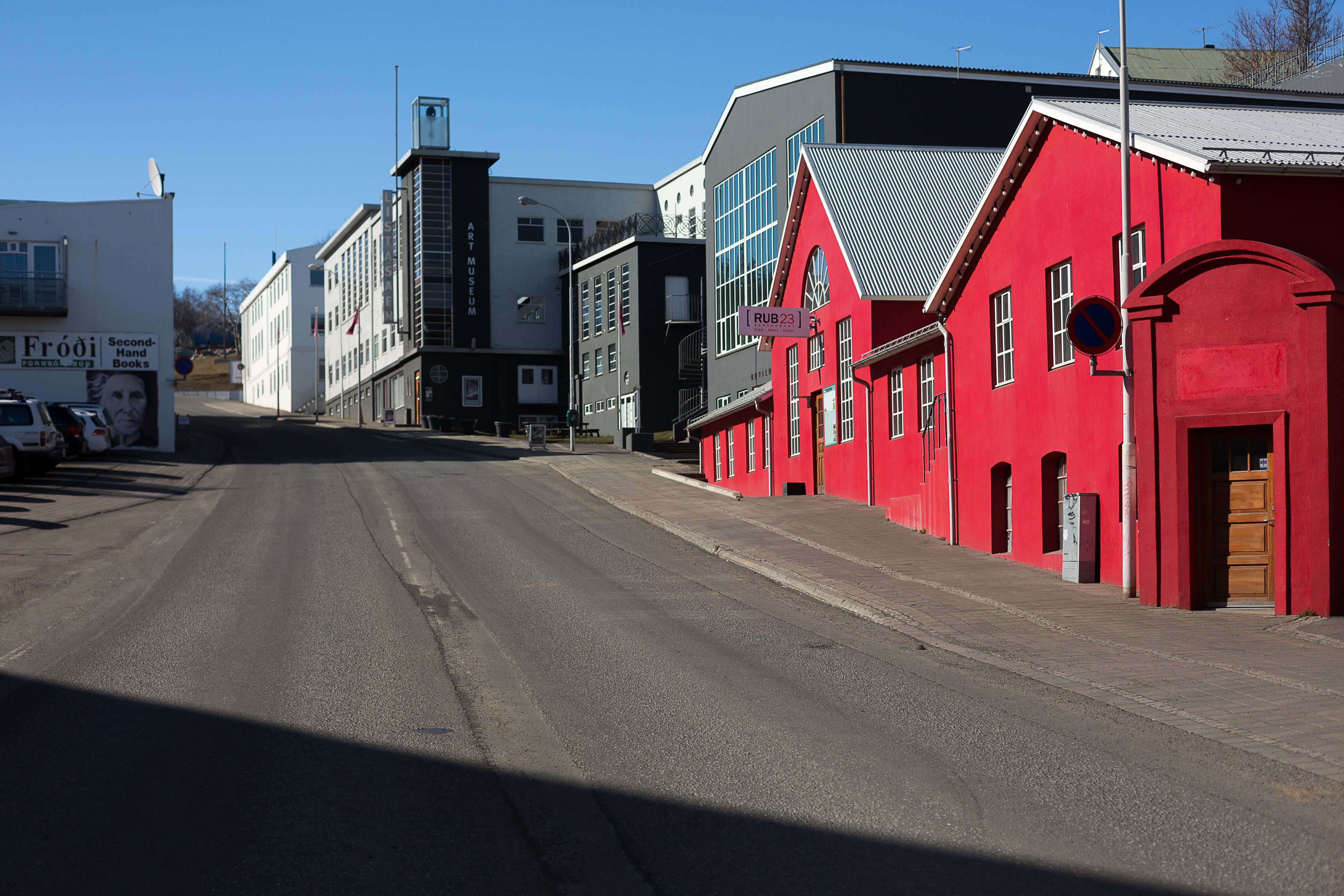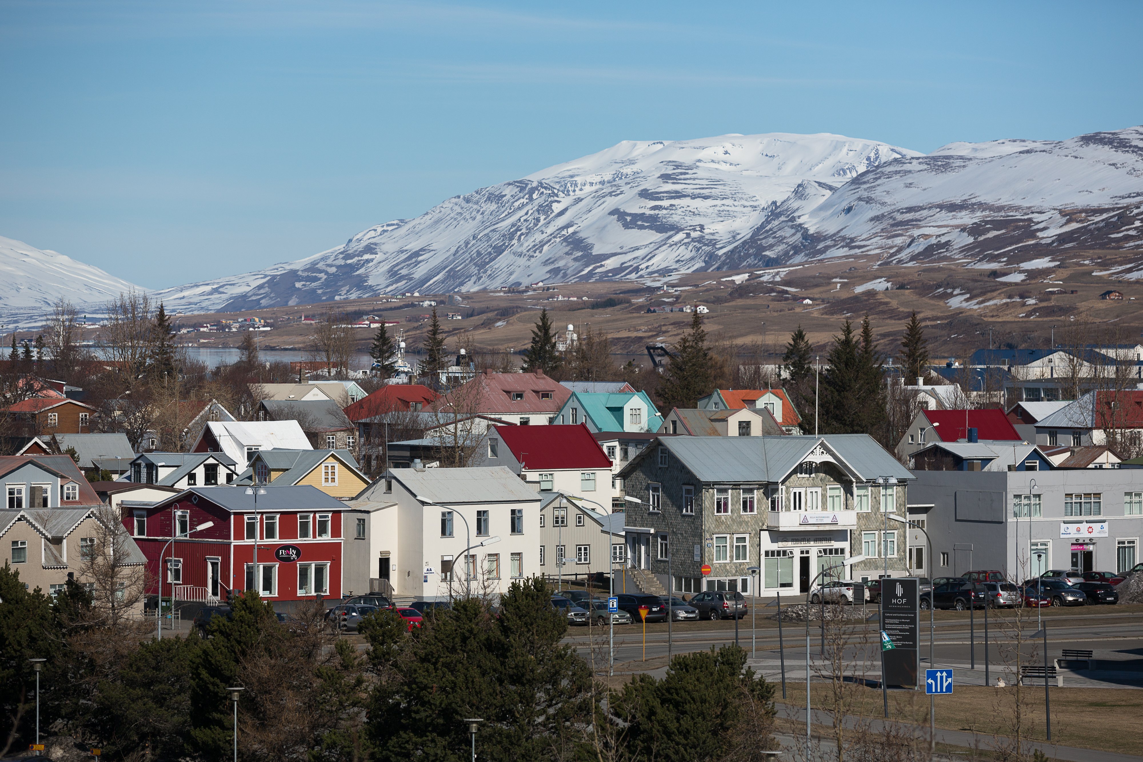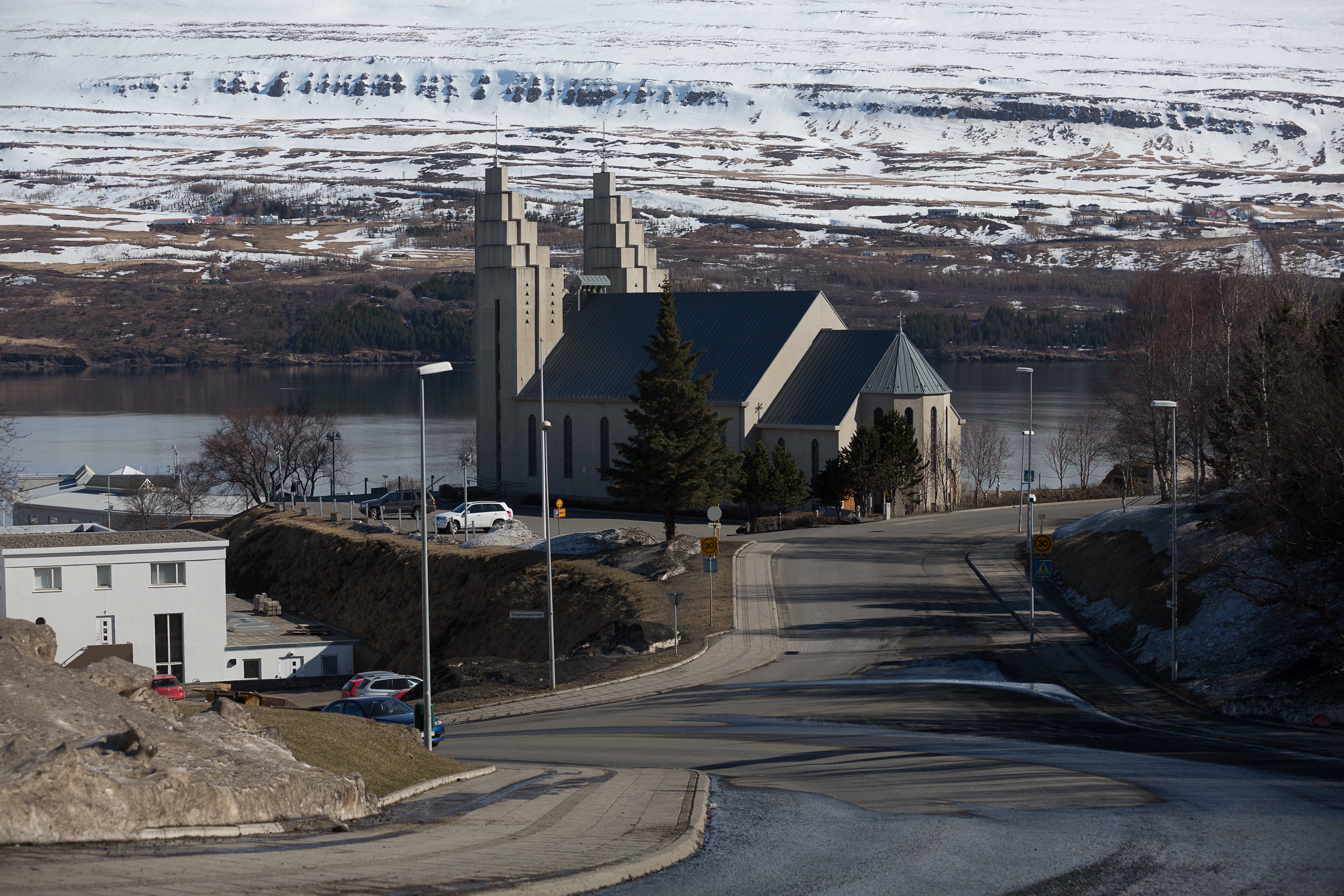 It a beautiful place to visit, even for just a few hours. Set in Eyjafjörður, the city is surrounded by mountains that were still snowy at the end of April. There are a surprising number of galleries, mostly located on a hill nicknamed “art alley” that runs beside the iconic church up to the town swimming pool, which must rate alongside the best in the country.