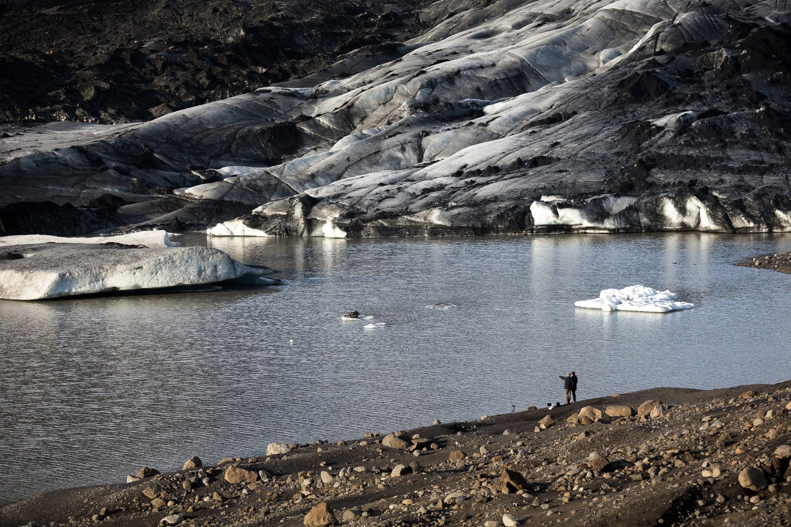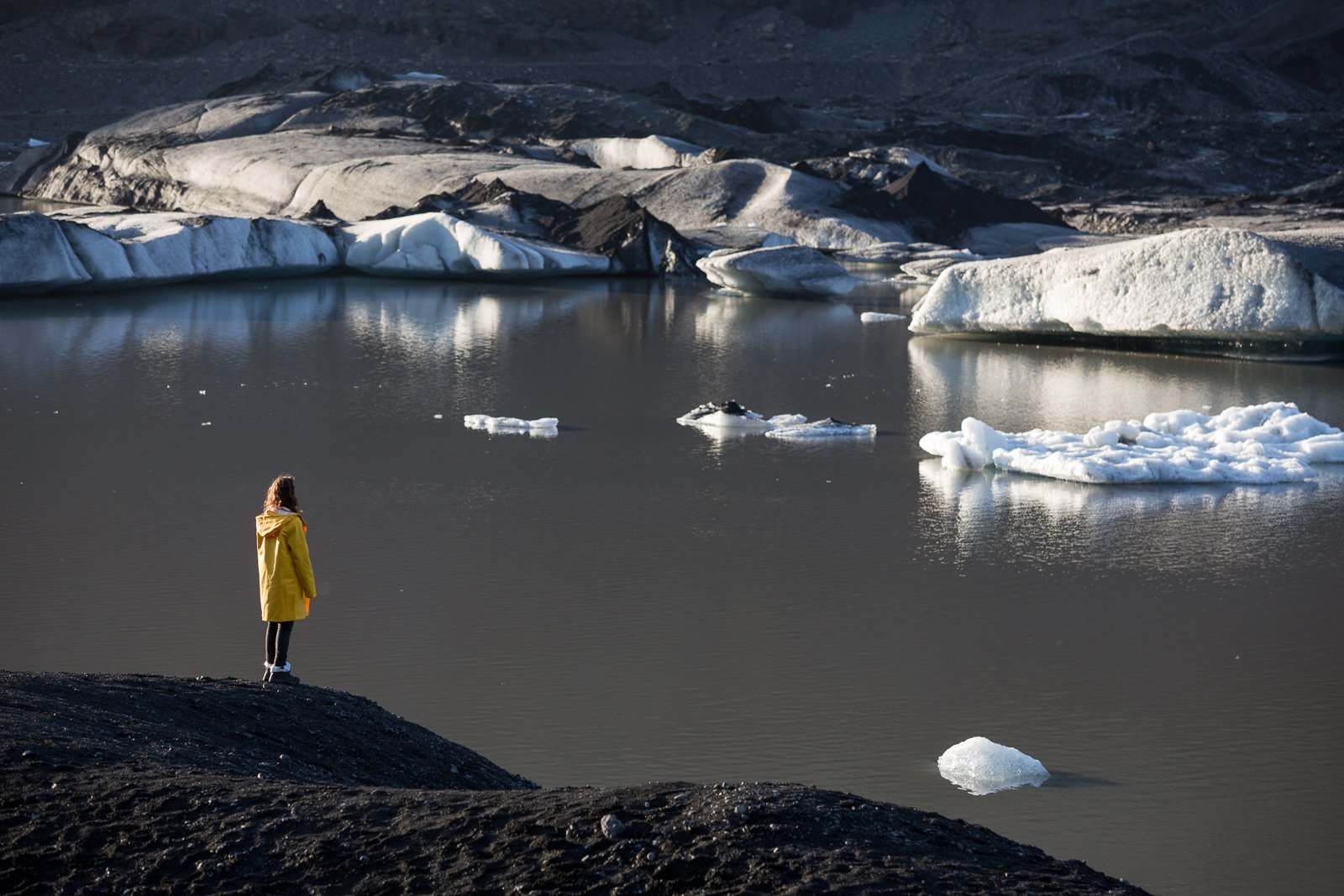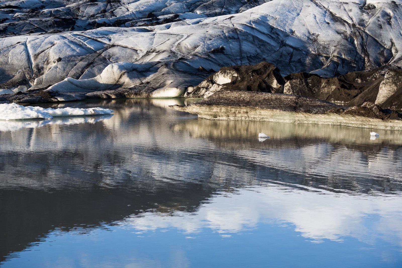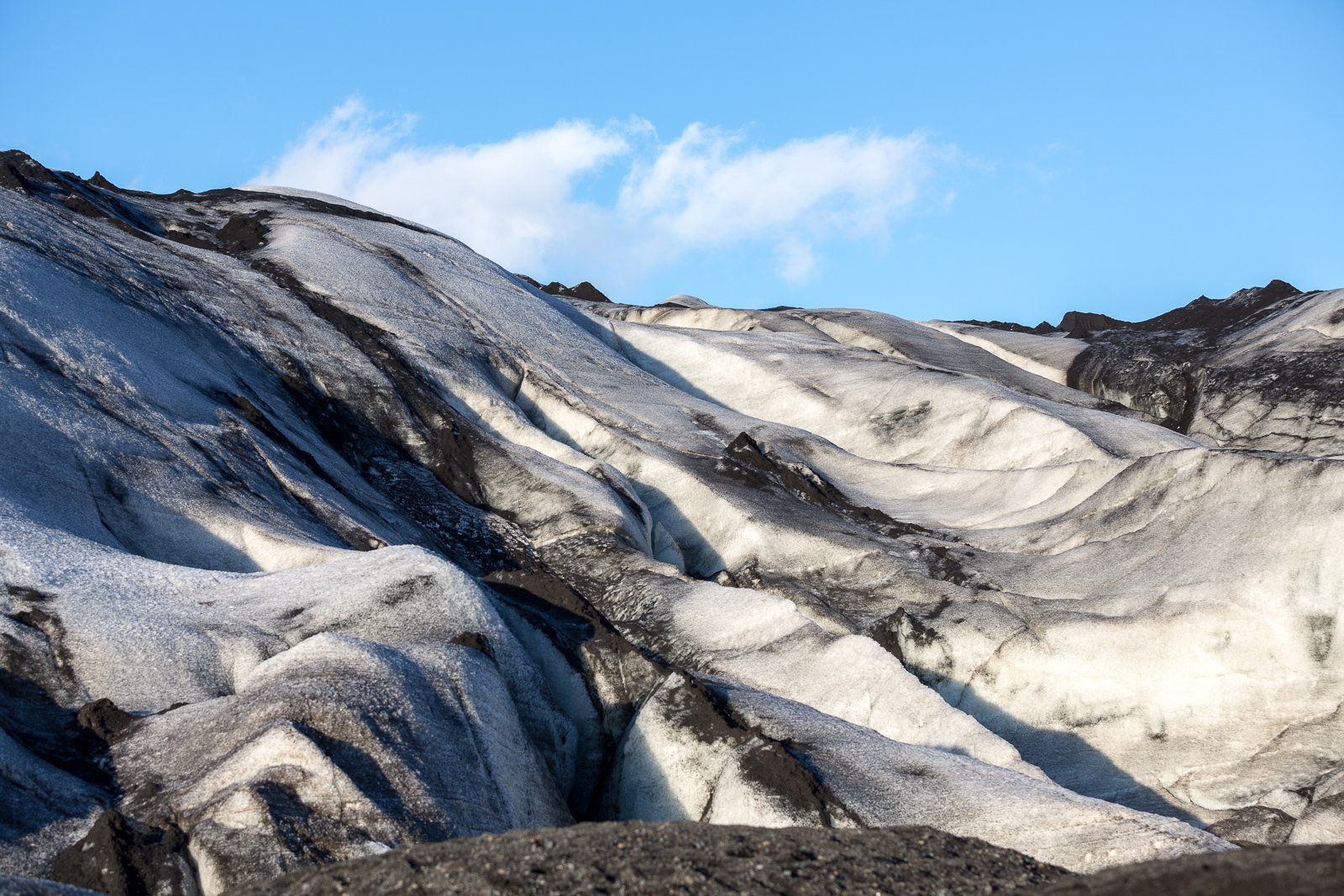 But if you just want to take a look, one of the easiest and safest places to do so is Solheimajökull. This glacier tongue extends from the heights of Mýrðalsjökull down to ground level, terminating just a few kilometres from the ring road. We went for a look at the ice and the glacier lagoon as they glittered in the early summer sunlight.