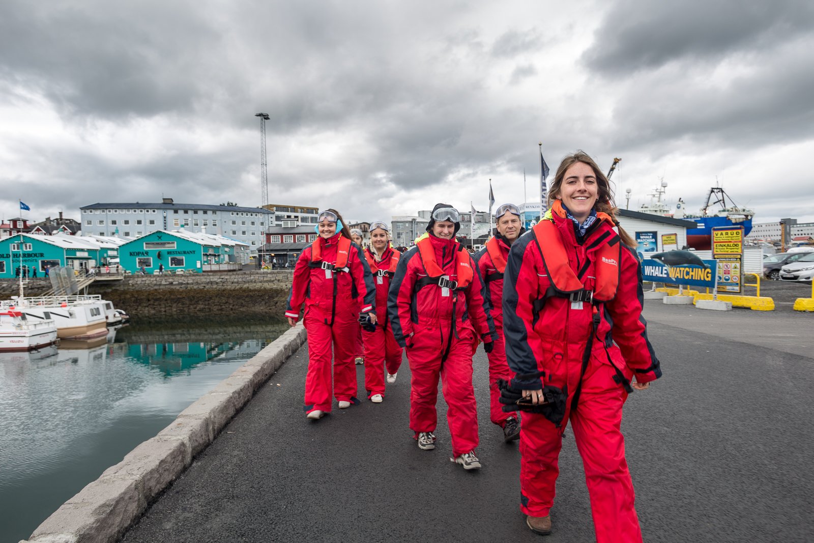 Having experienced extreme cold while taking boat trips in Iceland, I’ve packed my winter jacket, hat, scarf and gloves for this one. I only need the hat, though, as Whale Safari supply everybody with warm overalls, gloves, goggles and all necessary safety equipment. As I dress, I feel a bit anxious—I can’t help but think about Moby Dick rising up out of the water to destroy Ahab’s ship. But the guy who helps me and about dozen other thrill-seekers into our lifejackets is so chill that I quickly forget such scary thoughts.