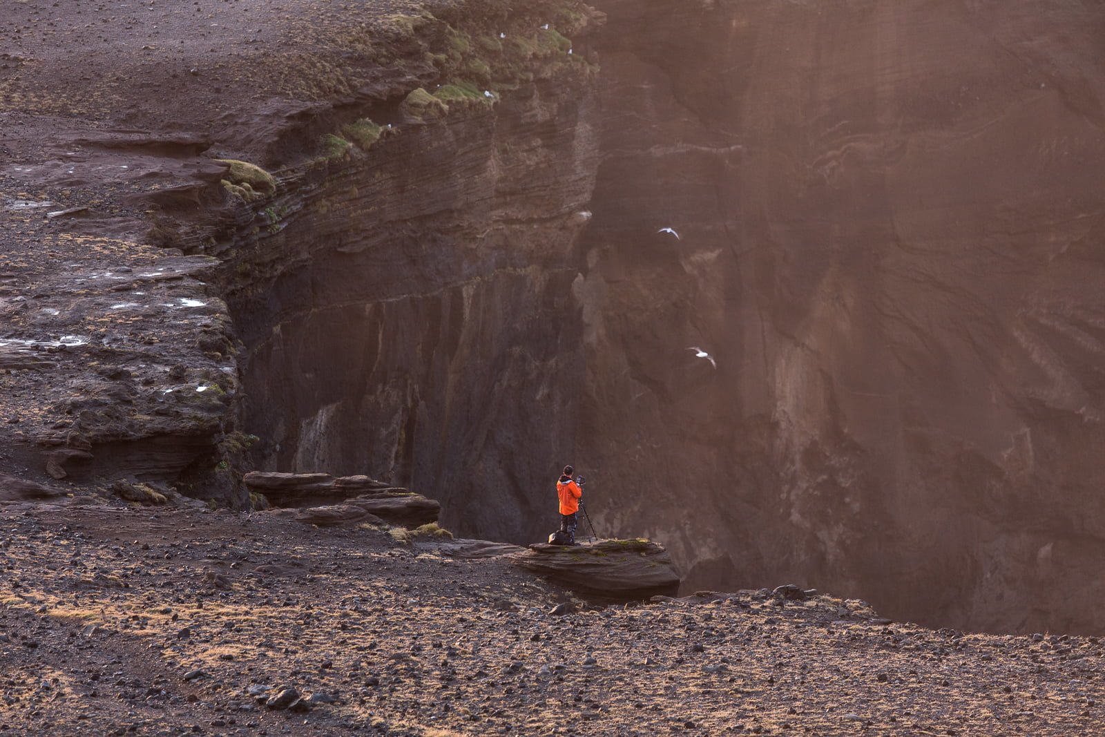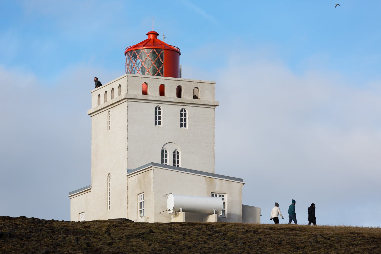 Overlooking the scene from the crown of Dyrhólaey is a lighthouse. It’s a proud little building, squat and square, topped with a rampart and a giant lamp. Tourists ascend the potholed dirt track in droves to take a look at it. They set up tripods, studying the light and the clouds for a particularly photogenic moment, or come over and try the unmarked front door only to find it locked.