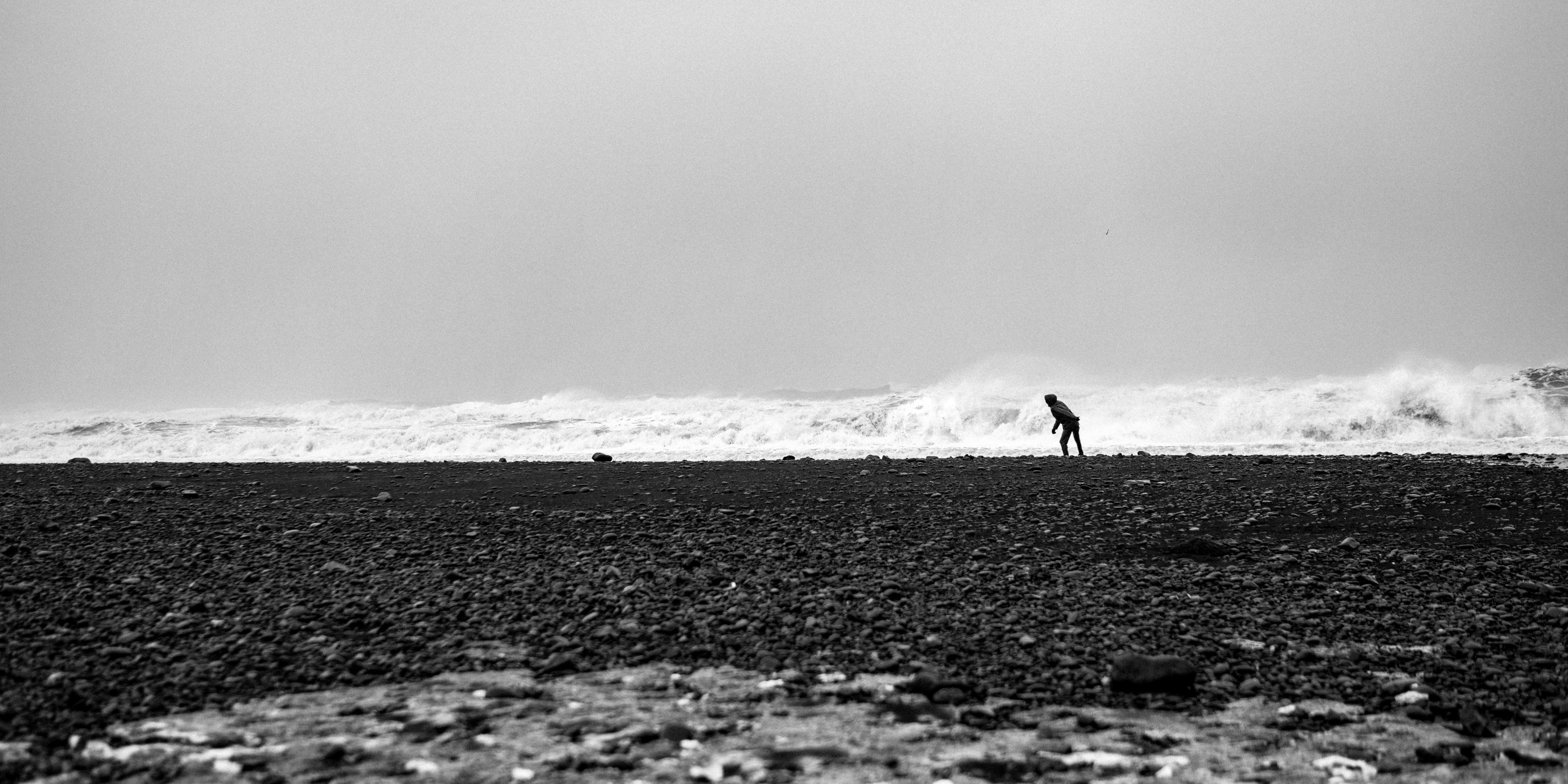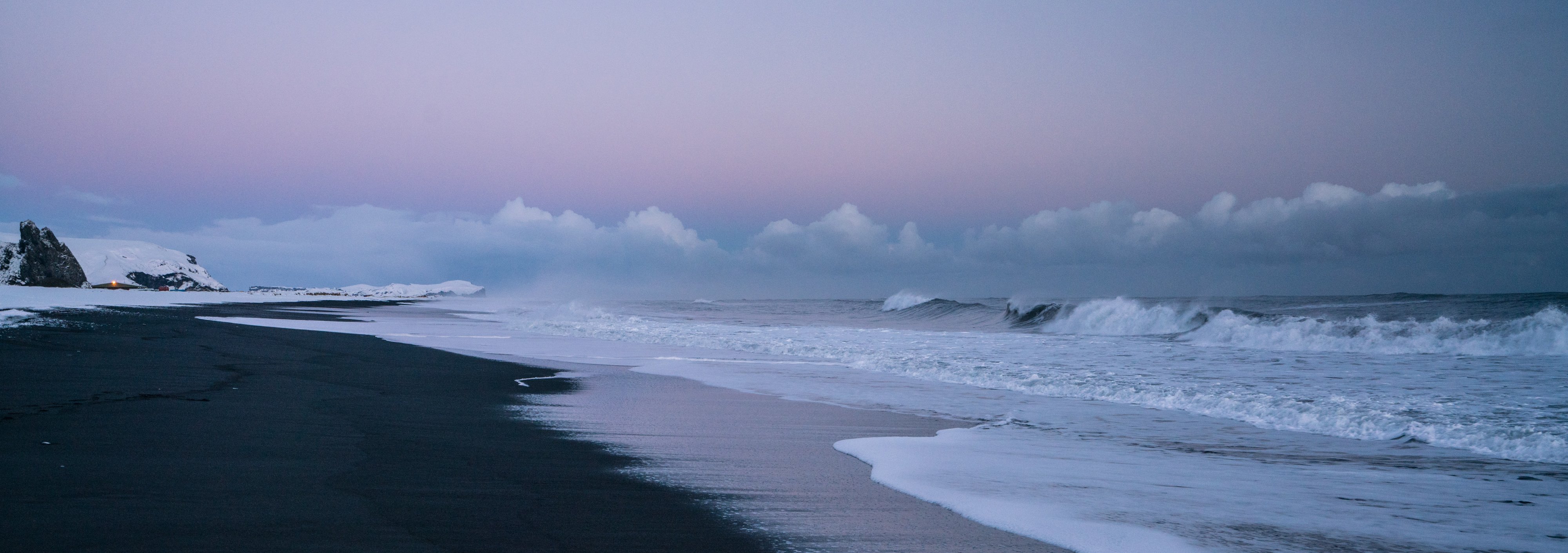 There are two walls of windows on the second floor of Norður Vík hostel. One faces the mountain that drops into Vík from the west. The other looks toward the Atlantic, out over the rooftops of the town’s 318 residents. The storm held us there. On the day we were supposed to be waking up in Skaftafell, I sit in this room and watch the cars come down the mountain road. As the road steepens, they slow down, in reverse momentum. One spins out and lands at an awkward tilt on the side of the road. Soon the glow of police lights crawls up, presumably to advise incoming travellers to find a place to stay for the night.