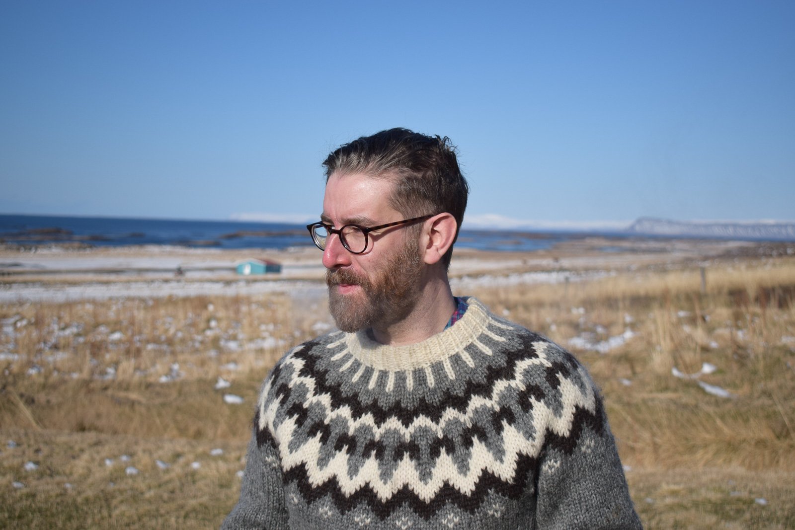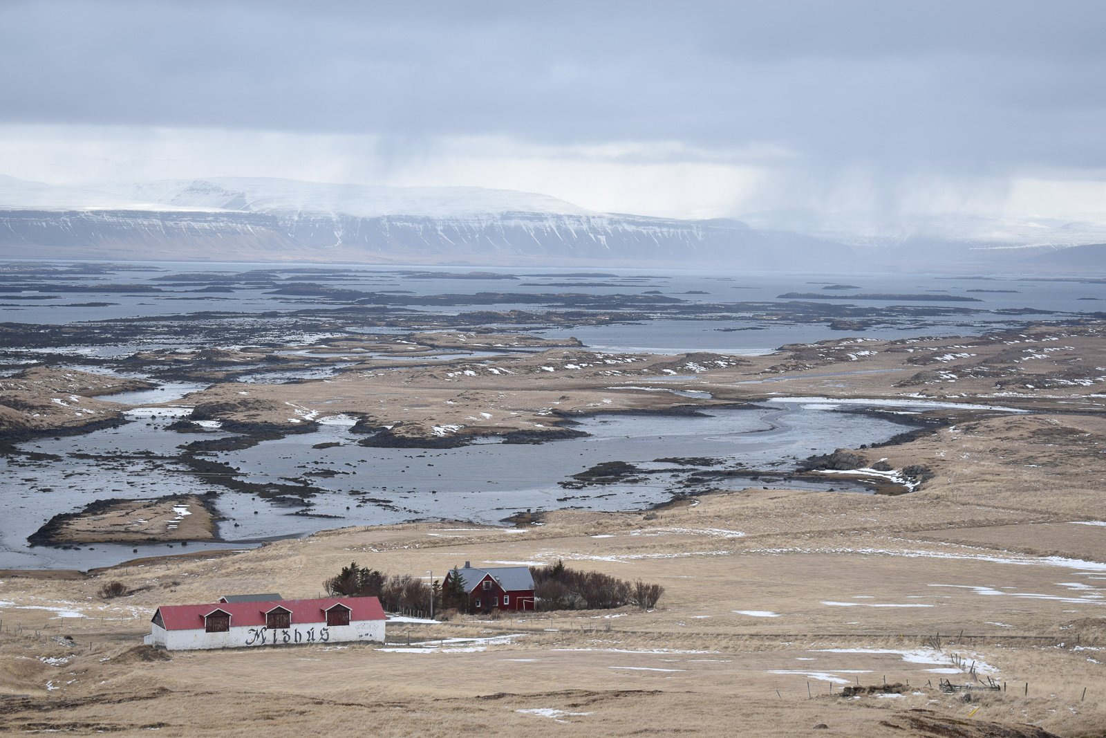The guesthouse has four comfortable bedrooms, and a living room with large windows that look out across the farm and down to the shore. By morning, the grey clouds have cleared—in the pink dawn sunlight, the Snæfellsnes peninsula rears up from Breiðafjörður, with the distinctive peak of the Snæfellsjökull glacier visible at its end. As I take a walk in the brisk morning air, Gústaf appears again, bearing a bottle of milk. He’s been up for hours, feeding the livestock and going about his day. He mentions the local hiking paths that are popular with summer tourists, who come in increasing numbers every year.