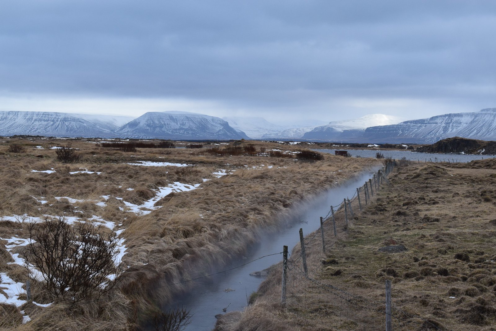 A couple of hours later, we approach our target for the day—the tiny coastal village of Reykhólar, population 135, located at the base of the Westfjords. Two towering industrial tanks appear first on the end of the village’s peninsula, then a church spire, like a white scratch against the metallic blue sea. We cruise through the town, taking in its smallness. There’s a diner, closed for Easter, then a pool, and a couple of quiet residential streets laid out in a crescent shape reminiscent of a Viking rune. Past that, some old cars rust slowly in a run-down industrial area that’s crisscrossed by steaming geothermal ditches. Other than a couple of guys standing on a scaffold repairing a house roof, we don’t see another soul.