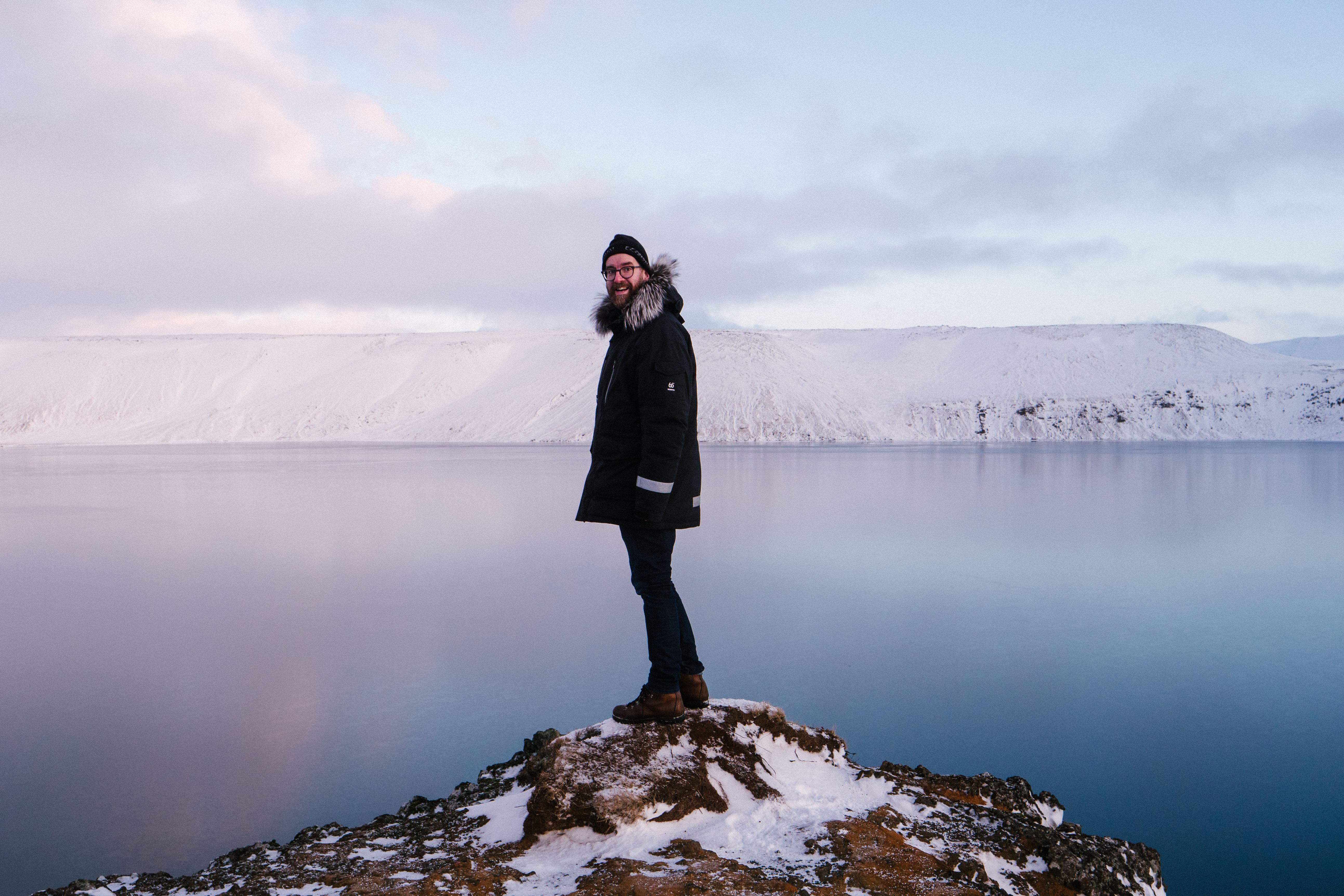 Þingvallavatn, Iceland’s biggest lake, sits cradled in the snowy tundra 45 kilometres east of Reykjavík. Surrounded by mountains and dotted with islands, the shimmering water recedes into the hazy distance, semi-frozen in the depths of the Icelandic winter. Shards of ice clink up onto the pebbly shore like broken glass, and the cold radiating upwards from the still surface is tangible. It’s a huge, majestic body of water that dominates the area; a deep blue inkblot lurking in the monochrome landscape.