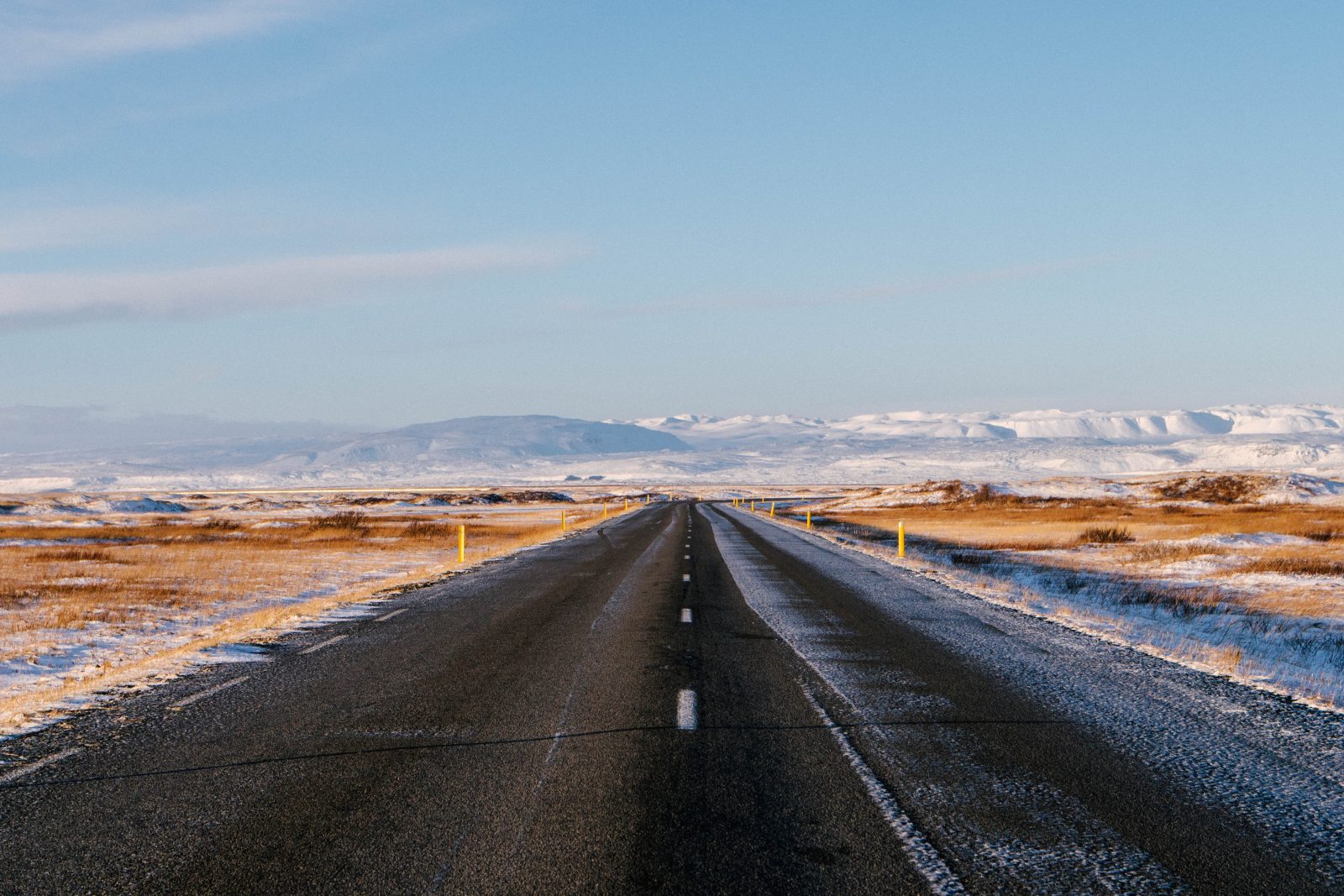 Fully rested and completely relaxed, we reluctantly check out. The lakeside route has become slippery with wet snow from the storm, so we decide to take the safer southern road back to Reykjavík. After coasting carefully around the iced-over lake of Úlfljótsvatn, we cruise through Selfoss towards the south coast, skirting past small villages and icy black beaches, turning towards Reykjavík via the Krýsuvík route.