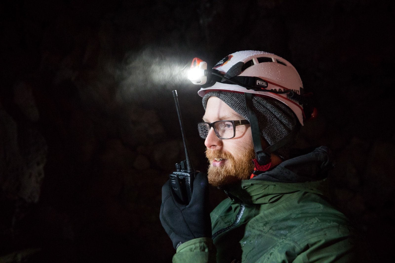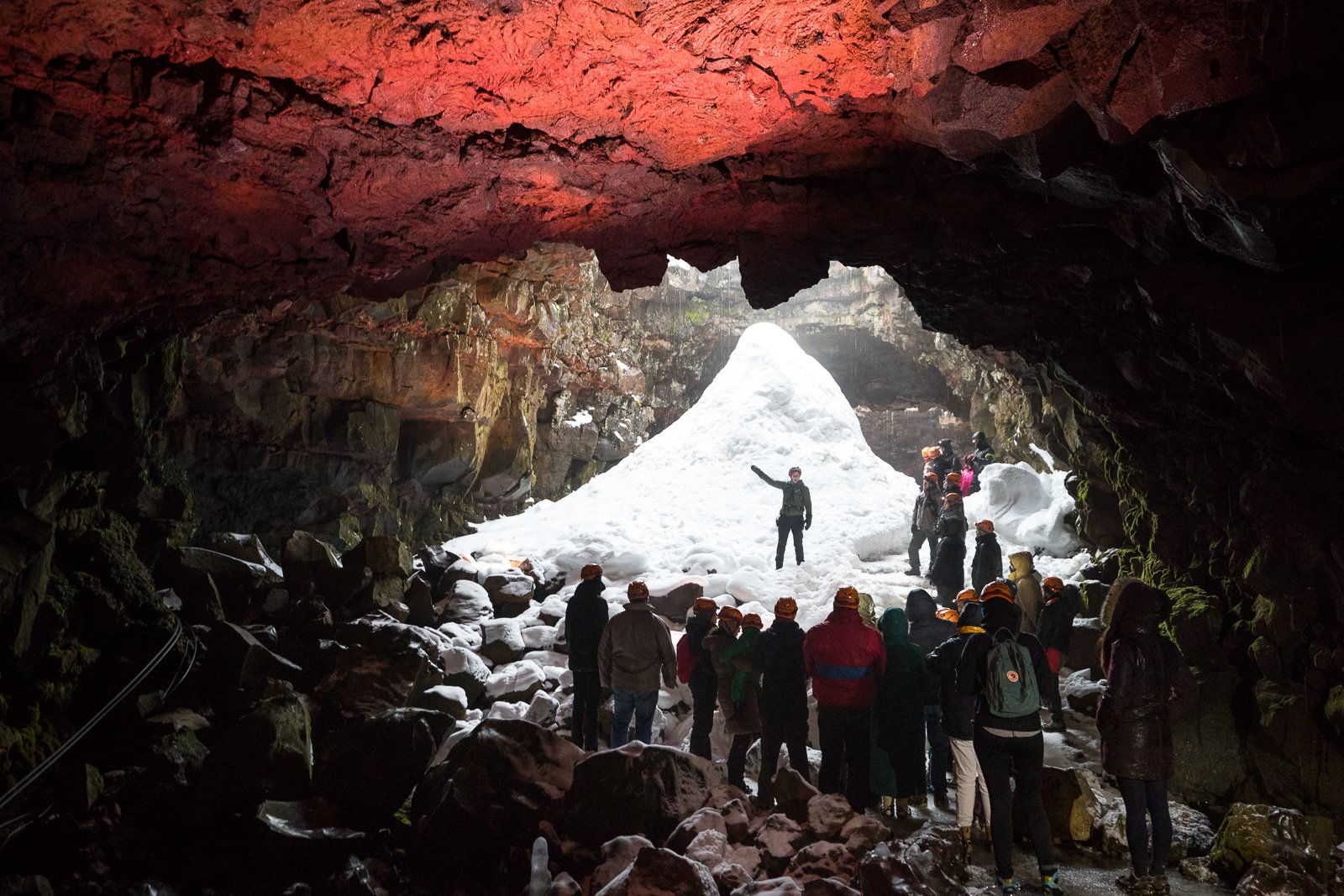 Raufarhólshellir formed around 5,200 years ago when a volcanic eruption occurred near the Bláfjöll mountains. About a 30-minute drive from Reykjavík, the lava tunnel is near the road, and easily accessible. We put on helmets, headlights and crampons, and we were ready to go.