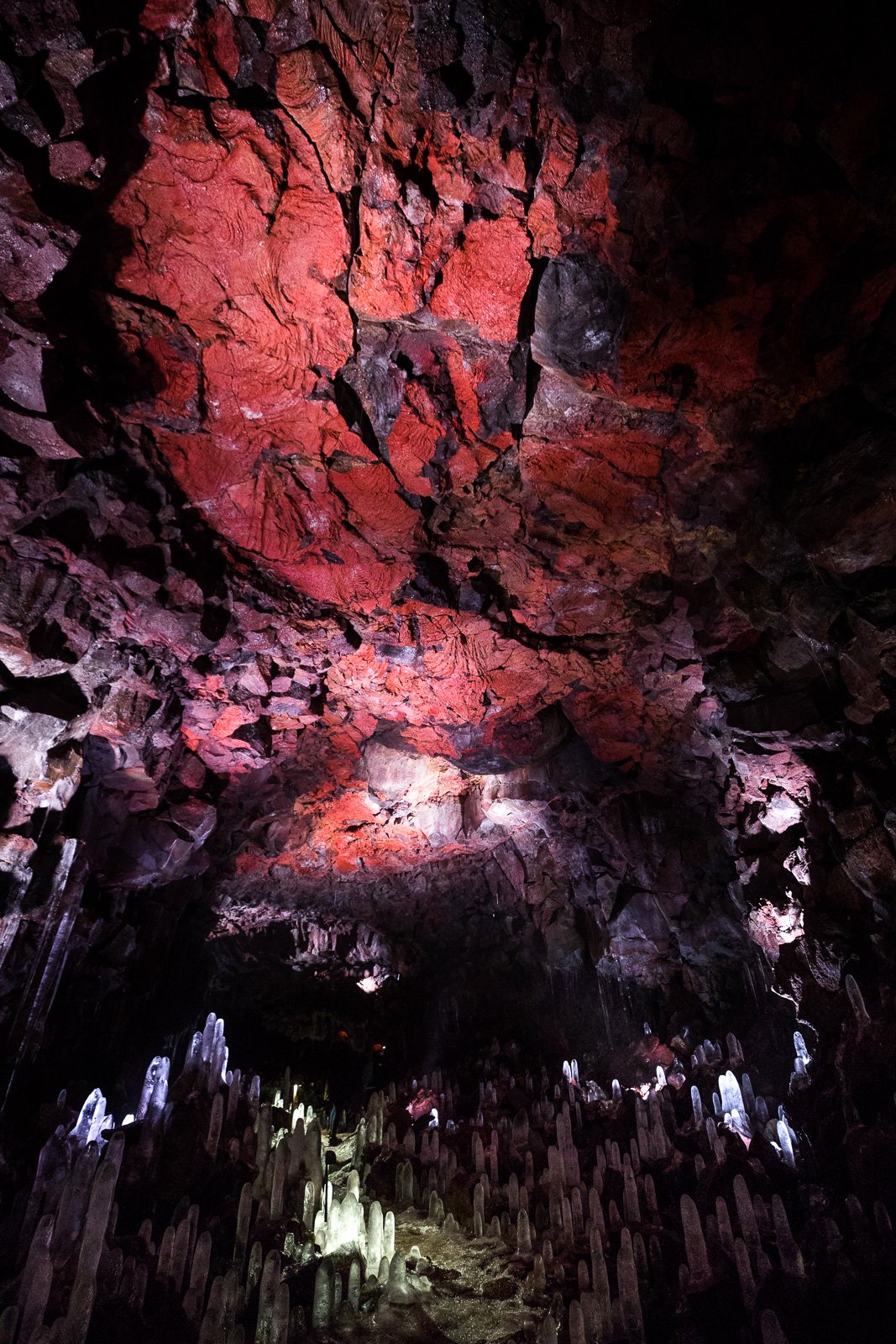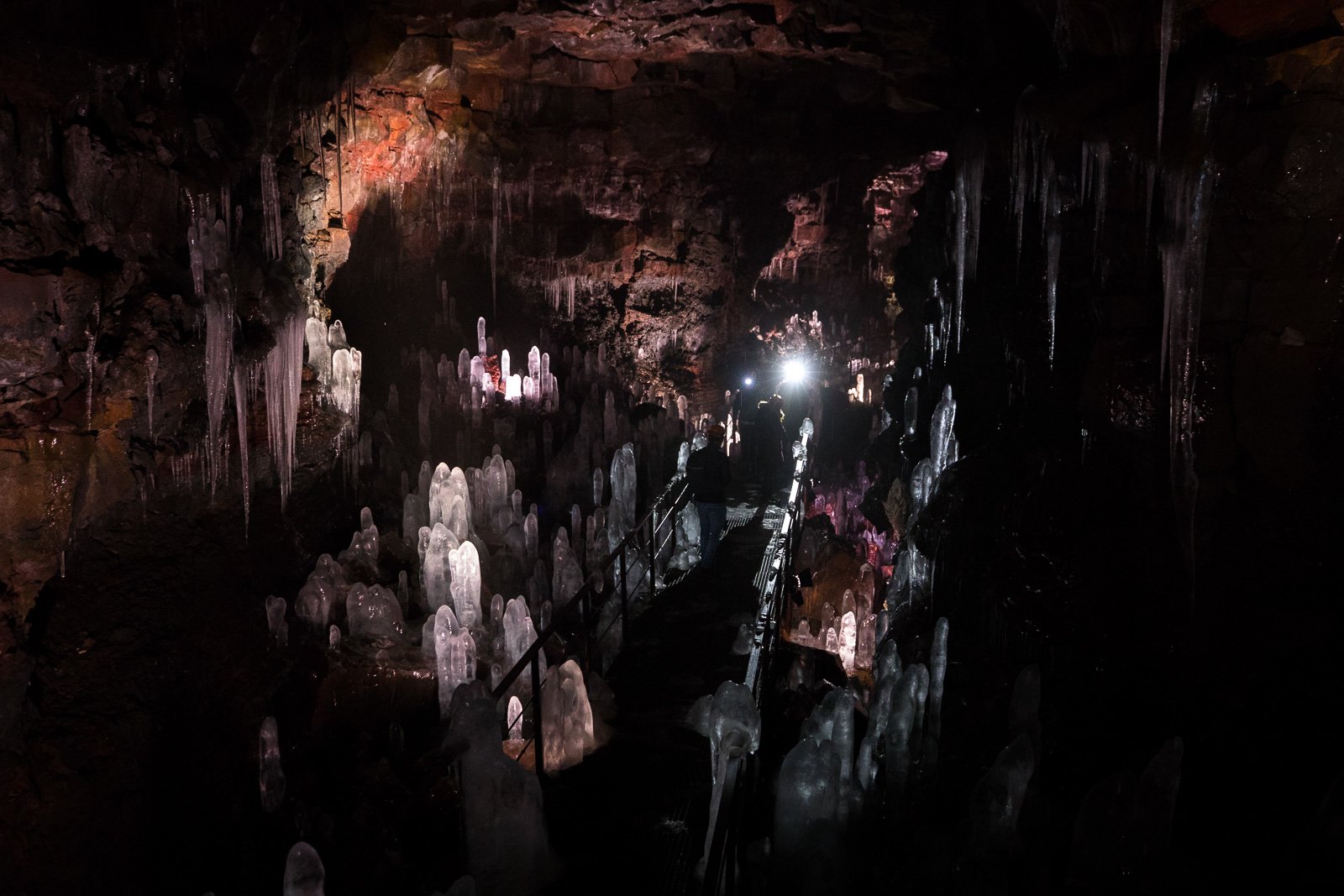 As we walked into this ancient lava tunnel, it felt like we were entering a sacred space. Snow piled up under three naturally-formed skylights near the entrance. As we ventured further down the 1.4km long cave, the light started to become dimmer. Colonies of cylindrical stalagmites covered most of the ground, with twin stalactites hanging from the ceiling. If you look closely at one of these natural sculptures, you’ll see an intricate pattern. Oh, wonderful nature.