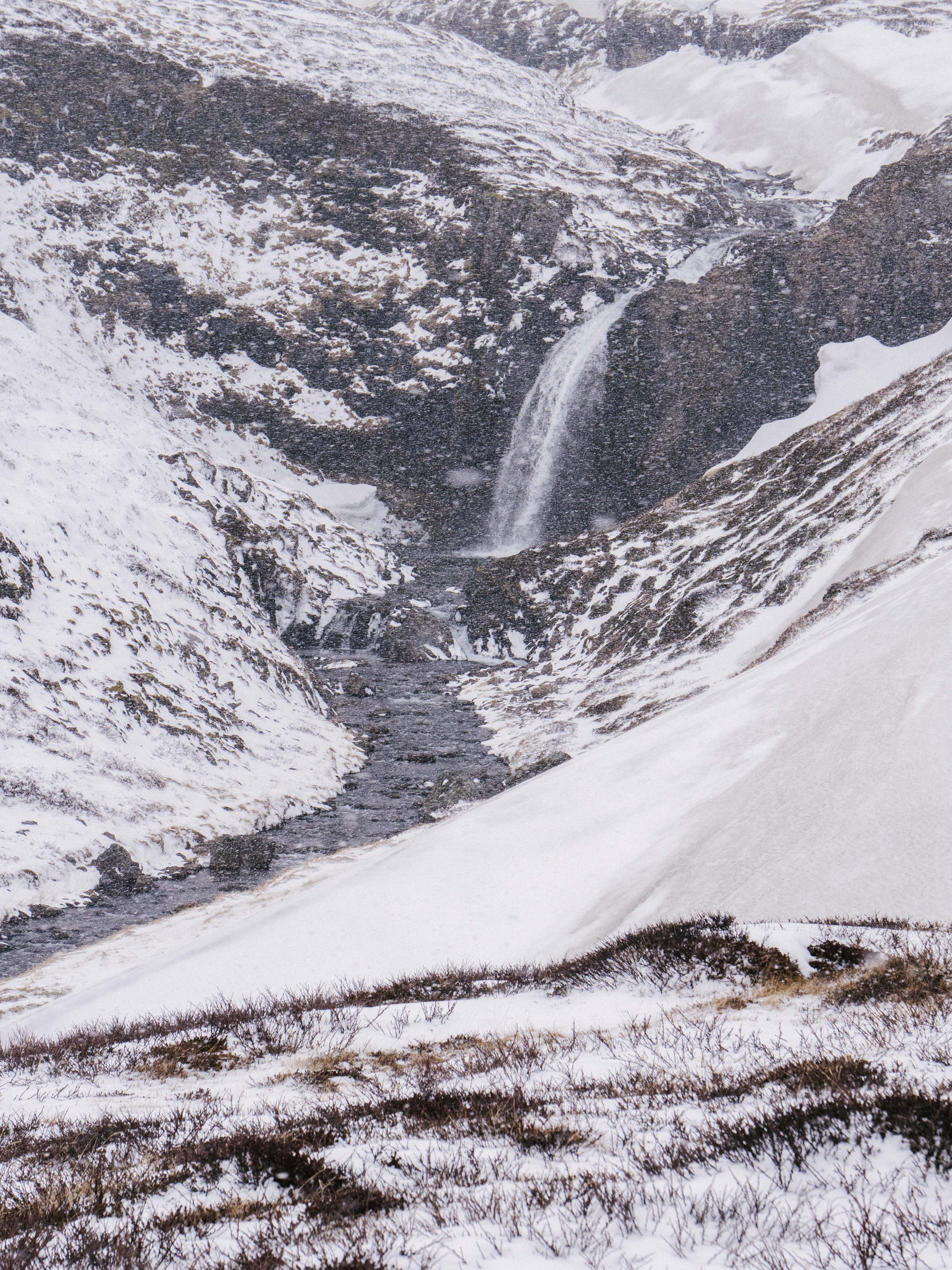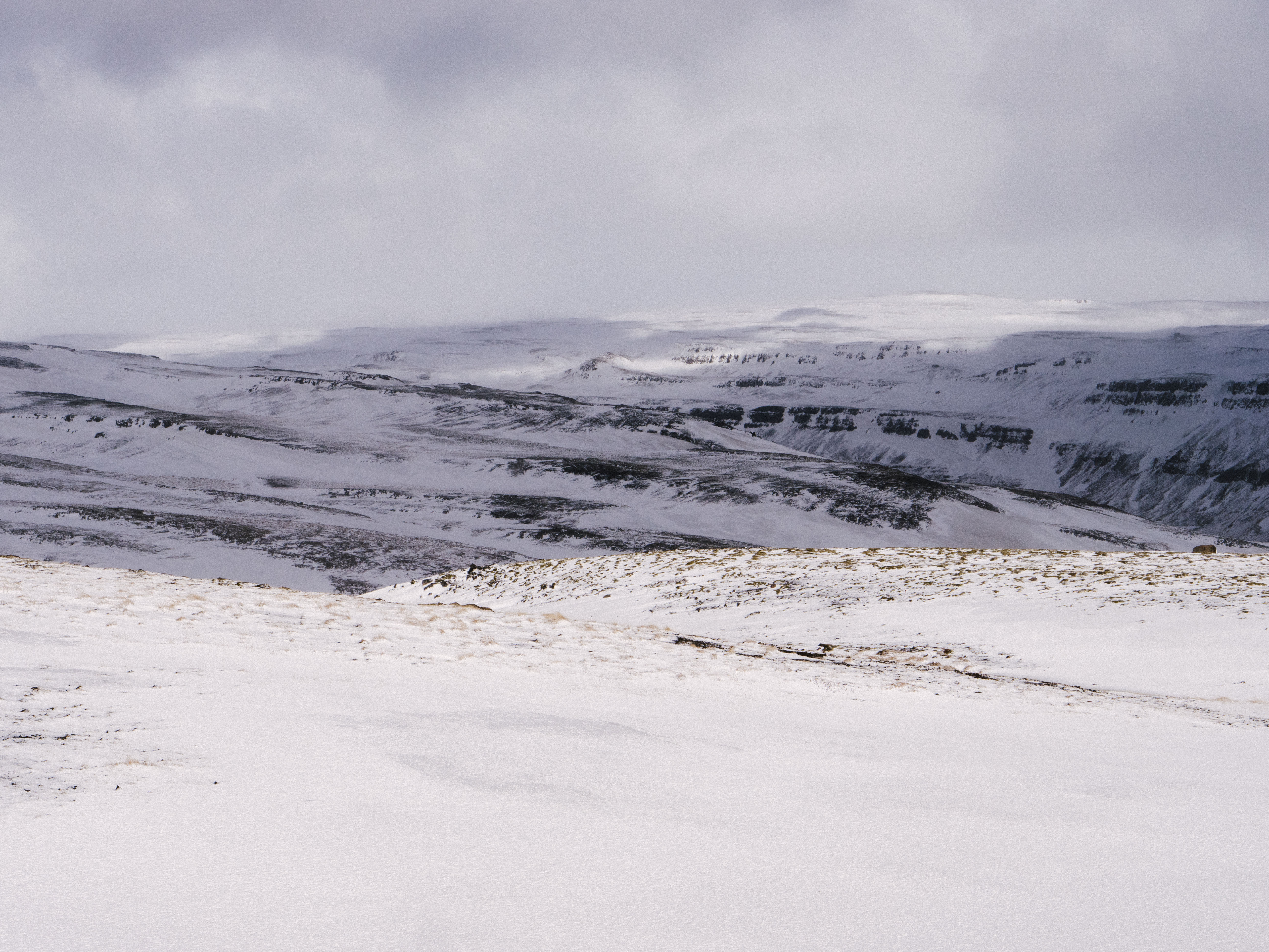 Two weekends ago, not long after the official first day of Icelandic spring, we took a road trip up to the wild countryside of the Westfjords. The further north we got, the more apparent it became that some regions of the countryside missed the memo about the arrival of springtime: there were drift-laden mountain passes, closed roads, frozen waterfalls and a barrage of snowstorms and sleet showers.