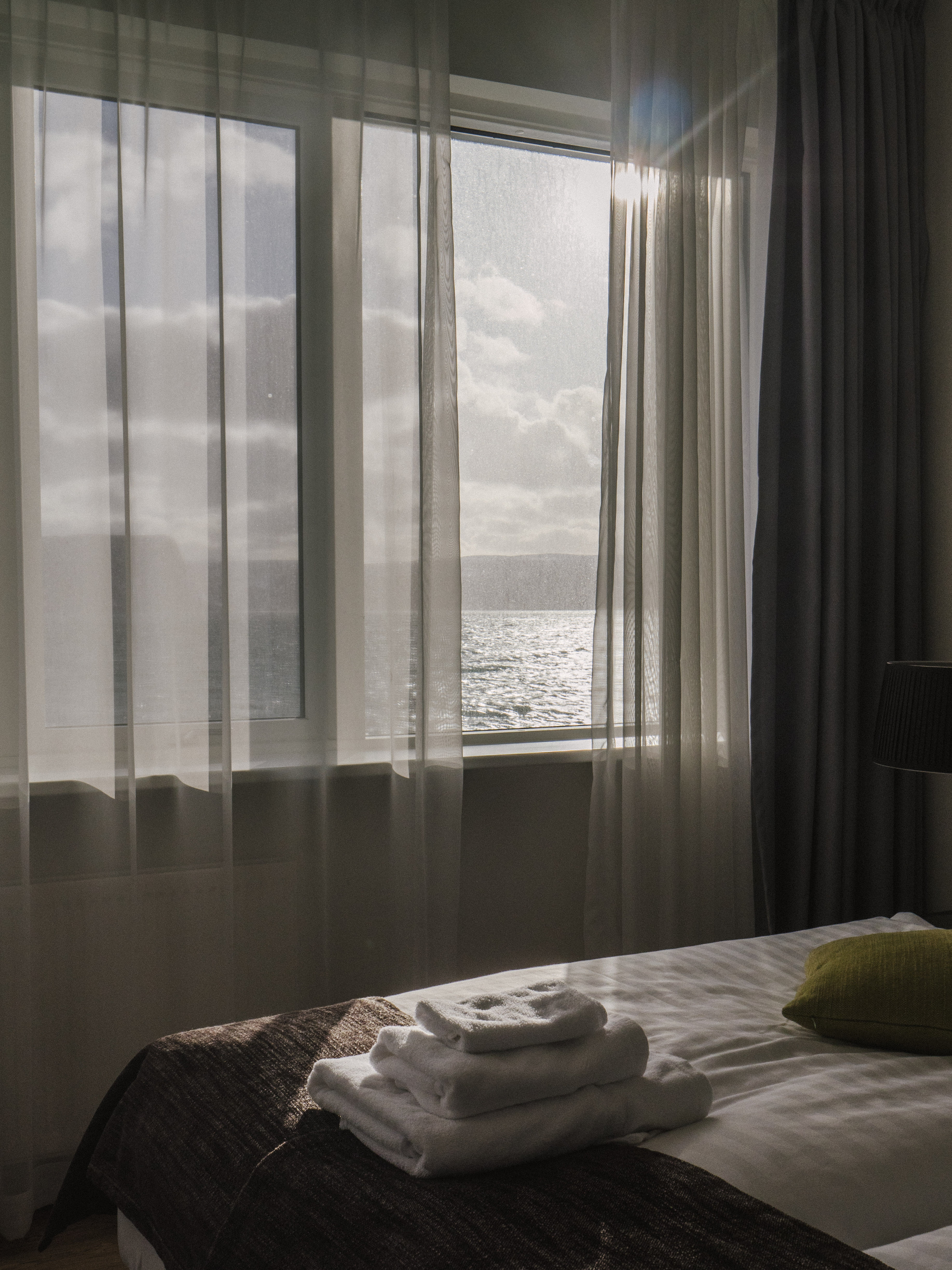 It might not have been ideal weather for sightseeing—the road to Dynjandi, for example, was closed—but it did create some picturesque scenes and dynamic landscapes. Here are some of our favourite shots from the road trip there, starting with the almost-green southern Iceland countryside, and ending with a much-needed hot meal at Fosshotel Westfjords.