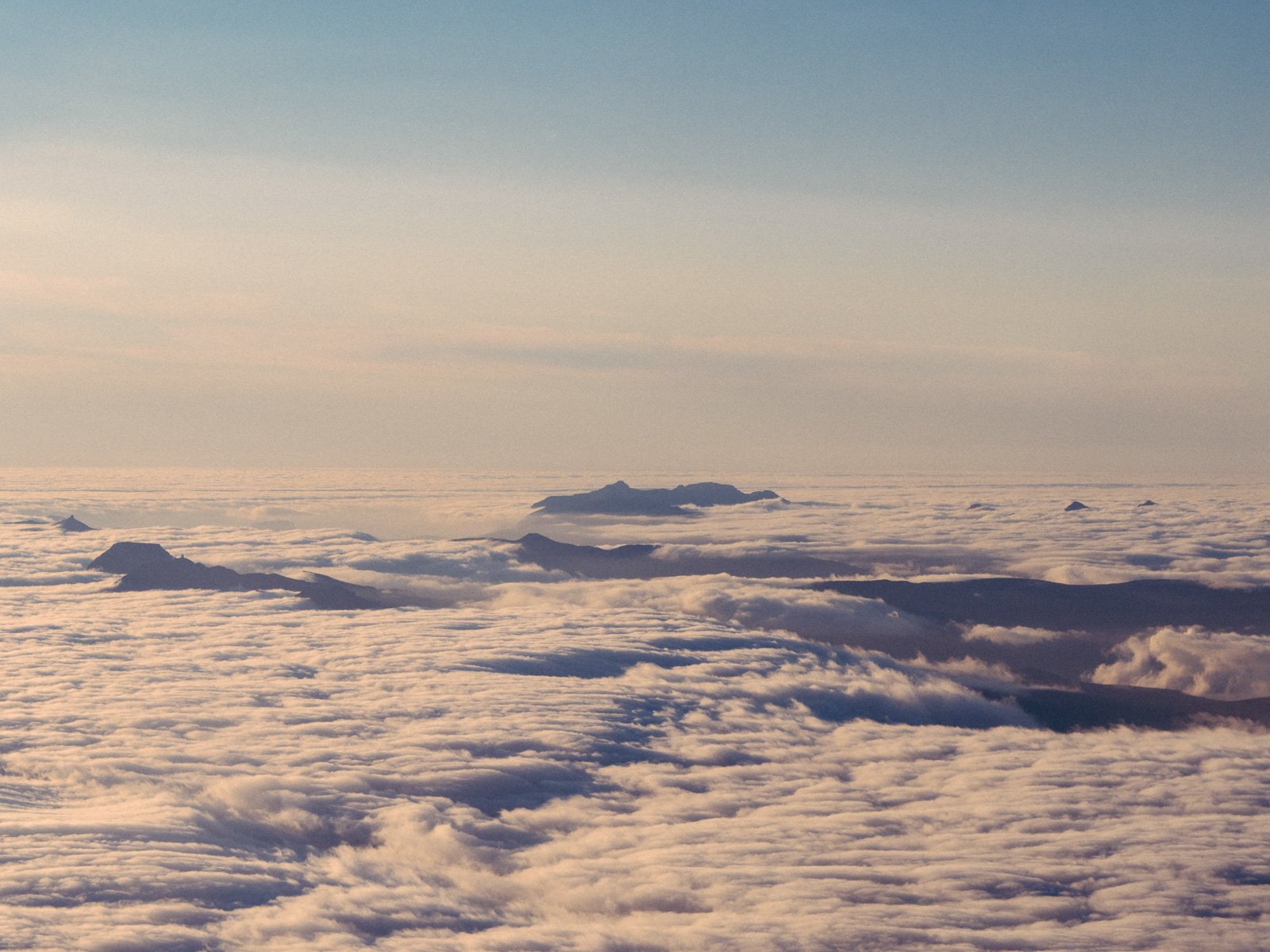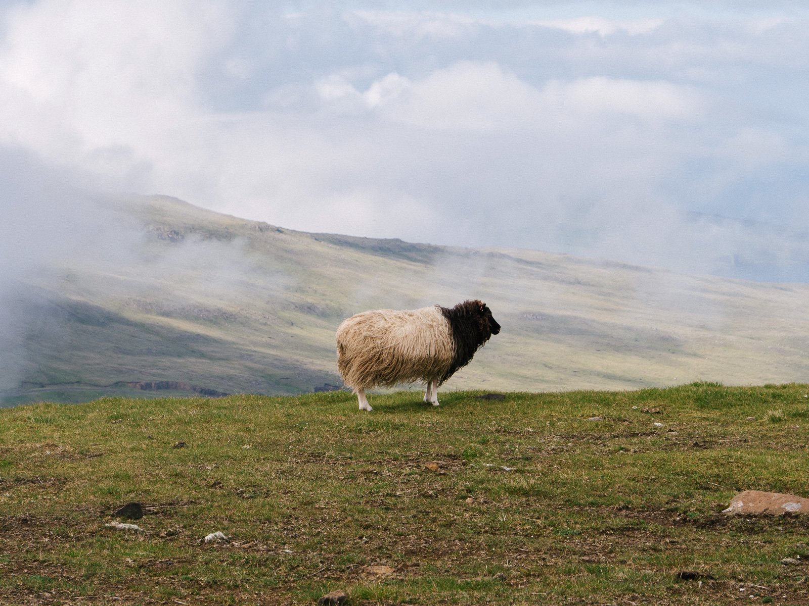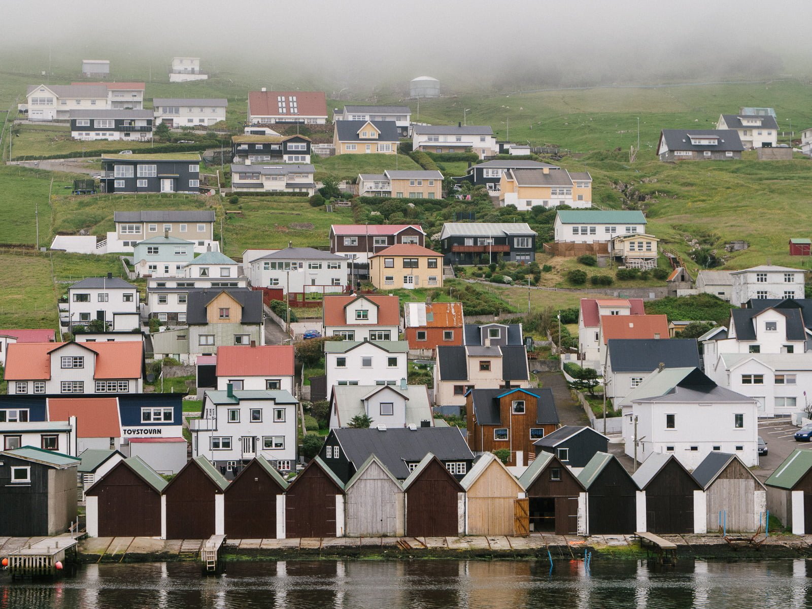 The Faroe Islands appear suddenly, a jutting interruption in an endless carpet of rolling clouds. The plane circles the islands during the descent until everything is blotted out, the blue gradient of the sky and the jagged peaks vanishing into a churning greyscape. We’re spat out under the clouds, bumping down onto the runway and emerging into a muted summer landscape.