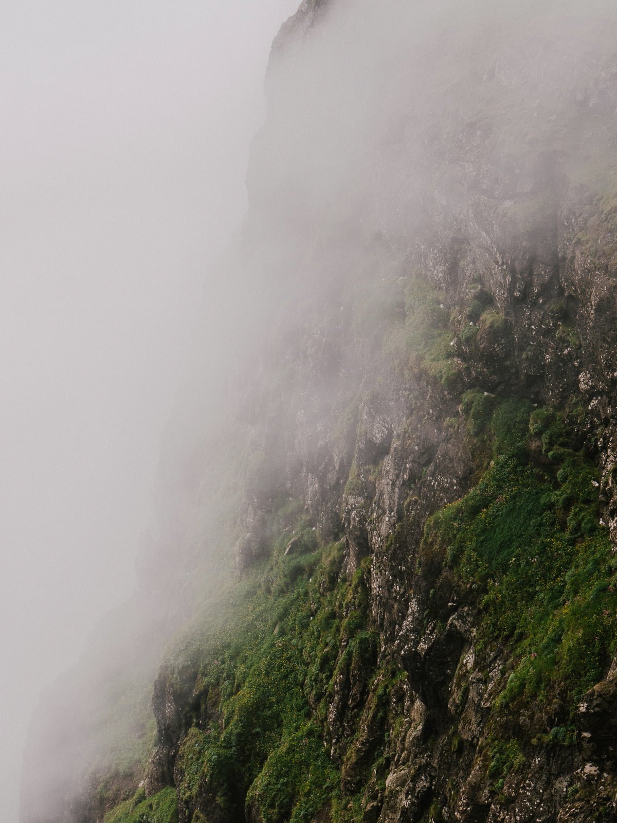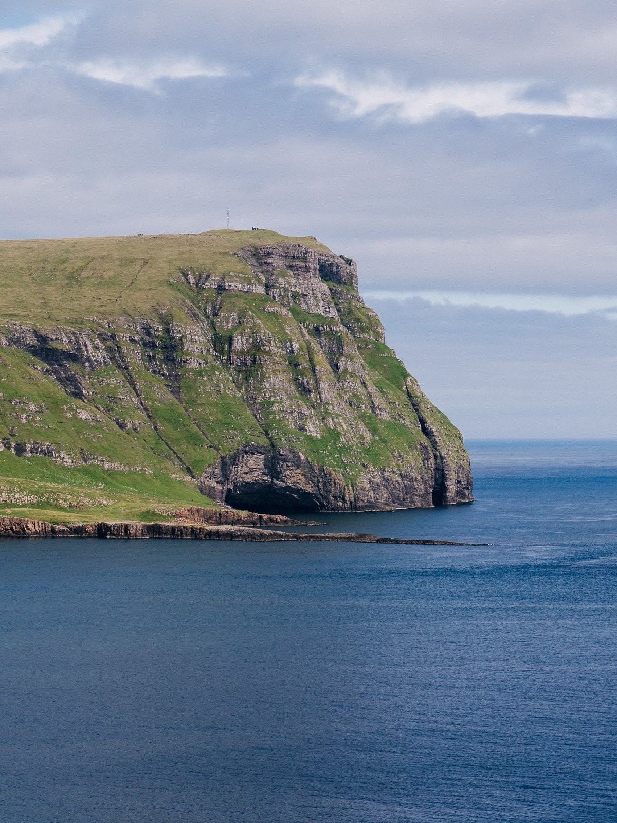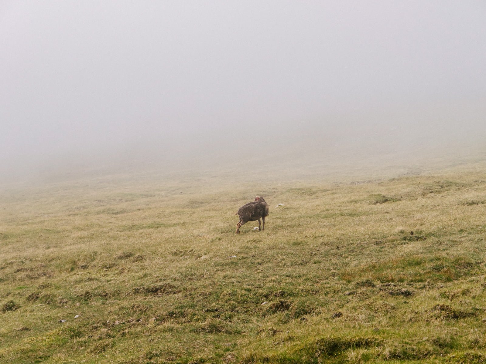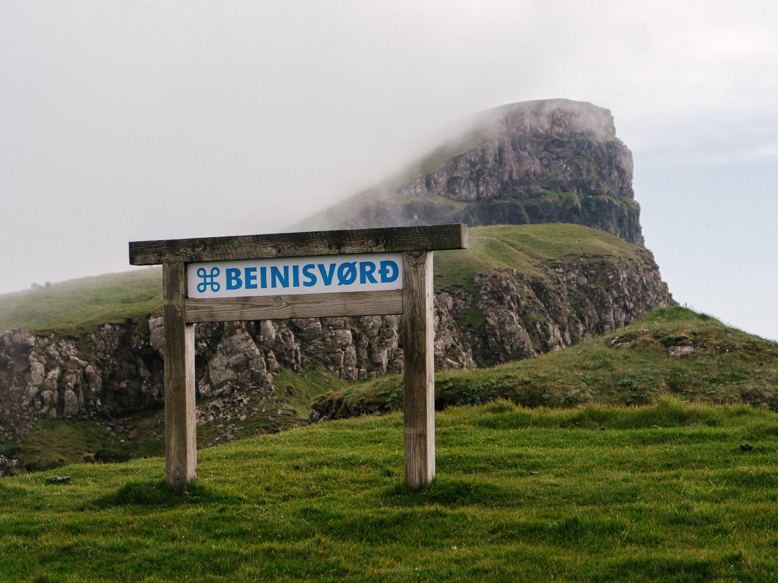 At the southern tip of the island lie some high cliffs that are draped in fog as we arrive. There’s a viewing platform that looks out to the lighthouse, where me meet a man named Sammi. He lives in Sumba, and walks up here every couple of days for the exercise. We chat for a while about the weather and the World Cup, and he enthuses about the Beinisvørð cliffs that sit near the roadside on the northward mountain road—although, he says, we might struggle to see anything in this fog.