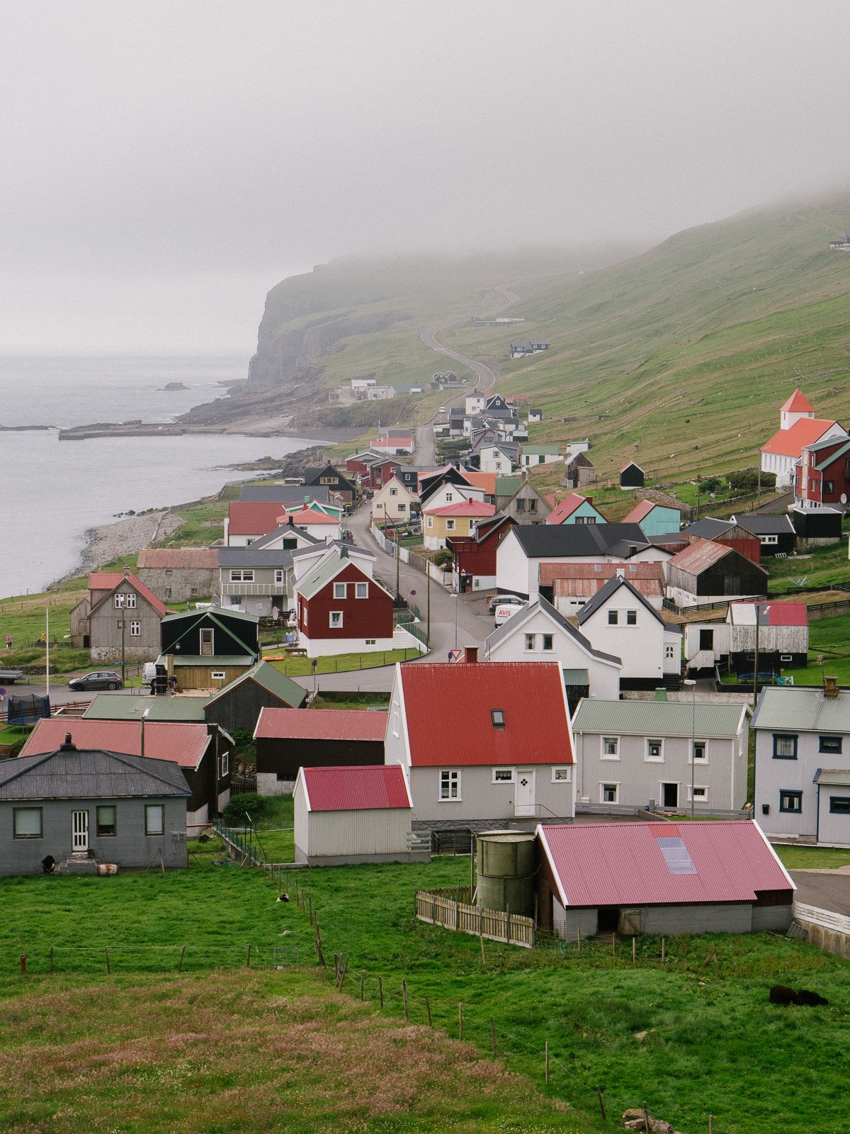 Tórshavn, the islands’ capital city, is a forty minute drive away, through a distinctly miniature world. The villages we pass on the narrow coastal roads are mind-bendingly small. Most are a few streets of colourful houses, and perhaps a gas station, a store, and a football field, and then we’ve already left over a skinny bridge or through a rough-hewn tunnel towards the next one.
