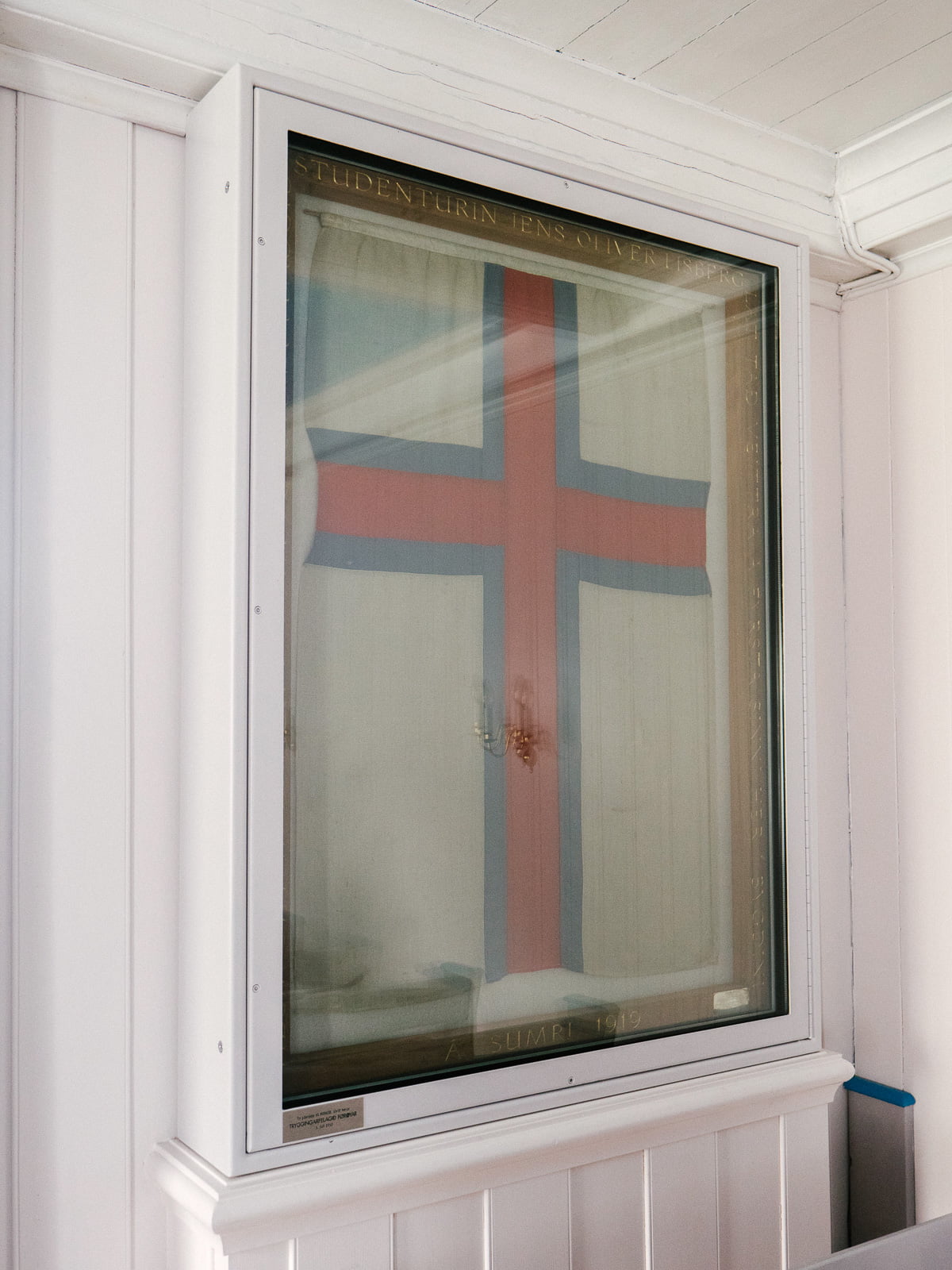 There are several towns and villages along the southern route. The first is Hov, a tiny hamlet and the site of two Viking-era burial mounds; next is Porkeri, in which the biggest building is a red, grass-roofed school. The charming seaside town of Famjin is a worthwhile detour over a high mountain pass—the village church proudly houses the prototype edition of the Faroese flag.