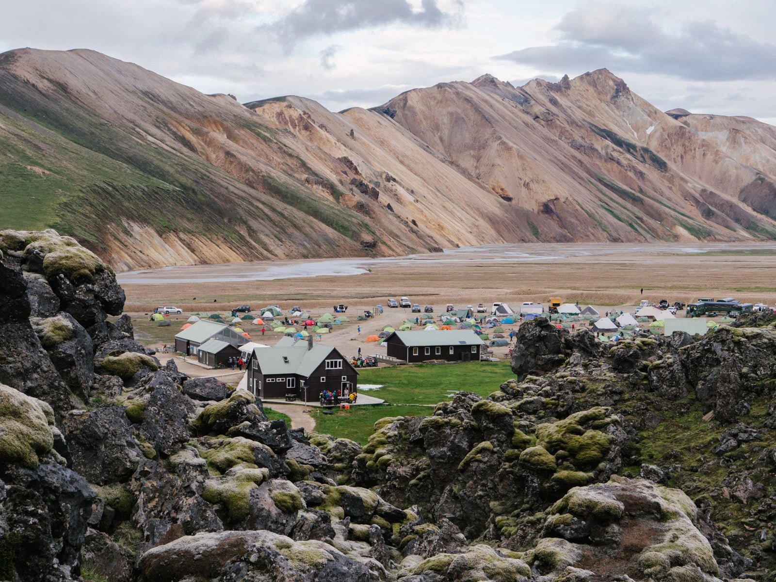 At the campsite, we hit a sudden line of traffic. A glacial outpour on the southwest tip of Vatnajökull, in the Skaftafell region, means that all the campsites in the area have been evacuated—and everyone has flocked to Landmannalaugar.