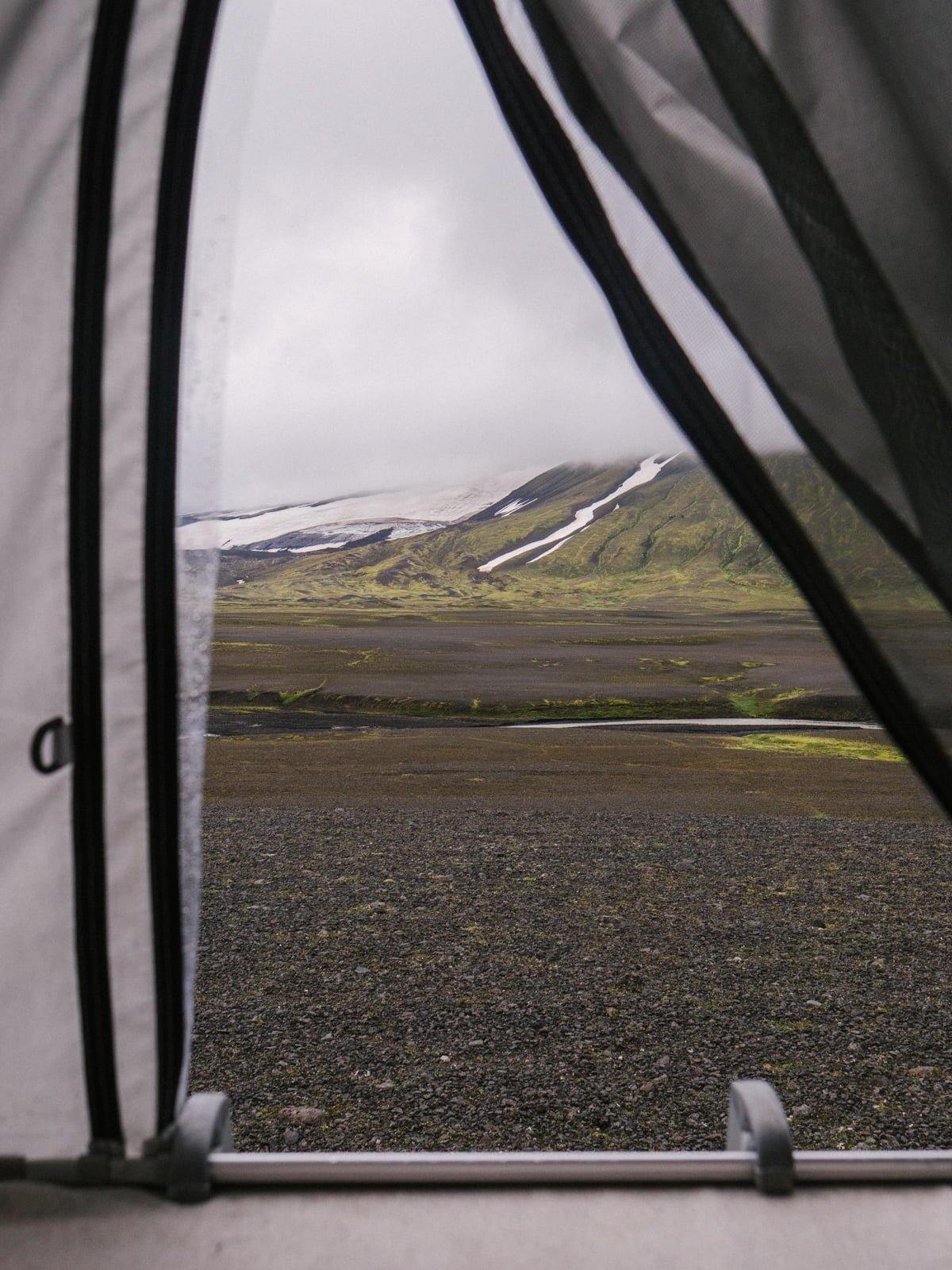In the morning, we cross the wide river and meet Inga Martel, one of Nýidalur’s two wardens. She seems suspicious of us arriving so early, and as we try to explain our thought process, she chastises us for not reaching Nýidalur the night before. Wild camping, as it turns out, is illegal when within reach of a formal campsite, and there are designated areas to sleep if the river is too high to cross. However, thinking back to the tumultuous river at midnight, I remain certain that our decision was the safest one.