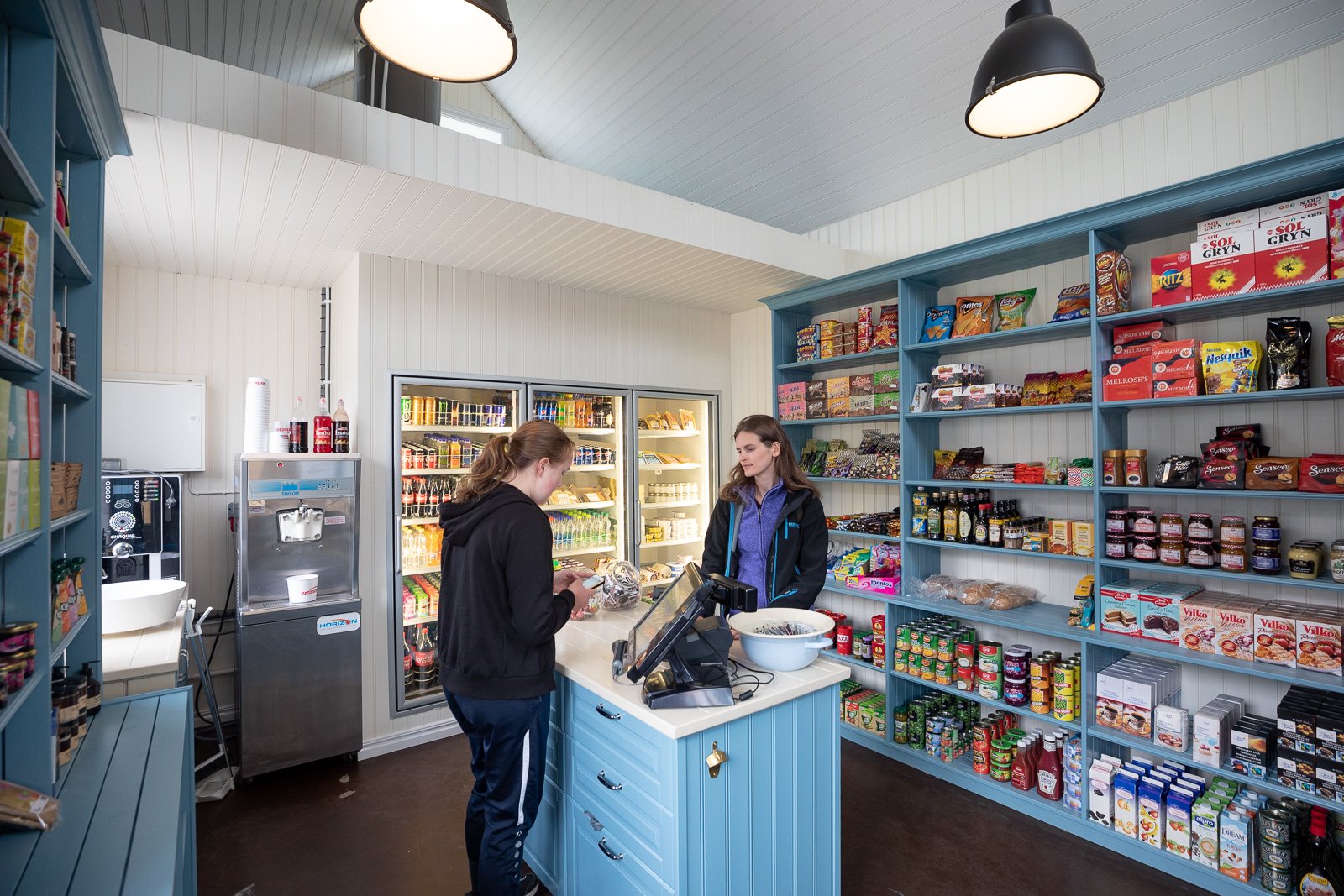 It might not look big from the outside, but the local store contains a wealth of products. The only store in Suðureyri, this intimate space stocks basic necessities, such as dairy products, cereals, soft drinks, gourmet products, and canned foods.