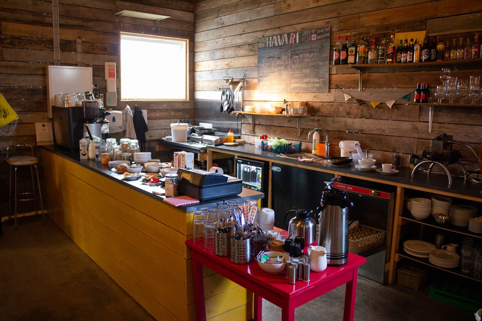 It’s all the more surprising, therefore, to discover Havarí, a hostel, music venue, and vegetarian café housed in a repurposed sheep barn between Djúpivogur and Breiðdalsvík. Svavar Pétur Eysteinsson, known to Icelandic music fans as Prins Póló, and his wife Berglind Häsler bought the farm in 2014 and gradually converted it into a cultural and culinary waystation in the middle of nowhere. The couple had already begun flirting with agrarian ambitions in 2013 when they started producing Bulsur—vegan sausages concocted from organic grains, beans, and seeds grown in the east. Having spent most of their lives in Reykjavík, they knew, more or less, what the future would look like there. ‘We wanted to see what would happen if we tried something completely different,’ Svavar tells me over breakfast at the café. The fare—an omelet alongside a grilled cheese sandwich stuffed with flattened Bulsur—is a welcome departure from the pyslur and potato chips that punctuated the previous day’s journey from Reykjavík.