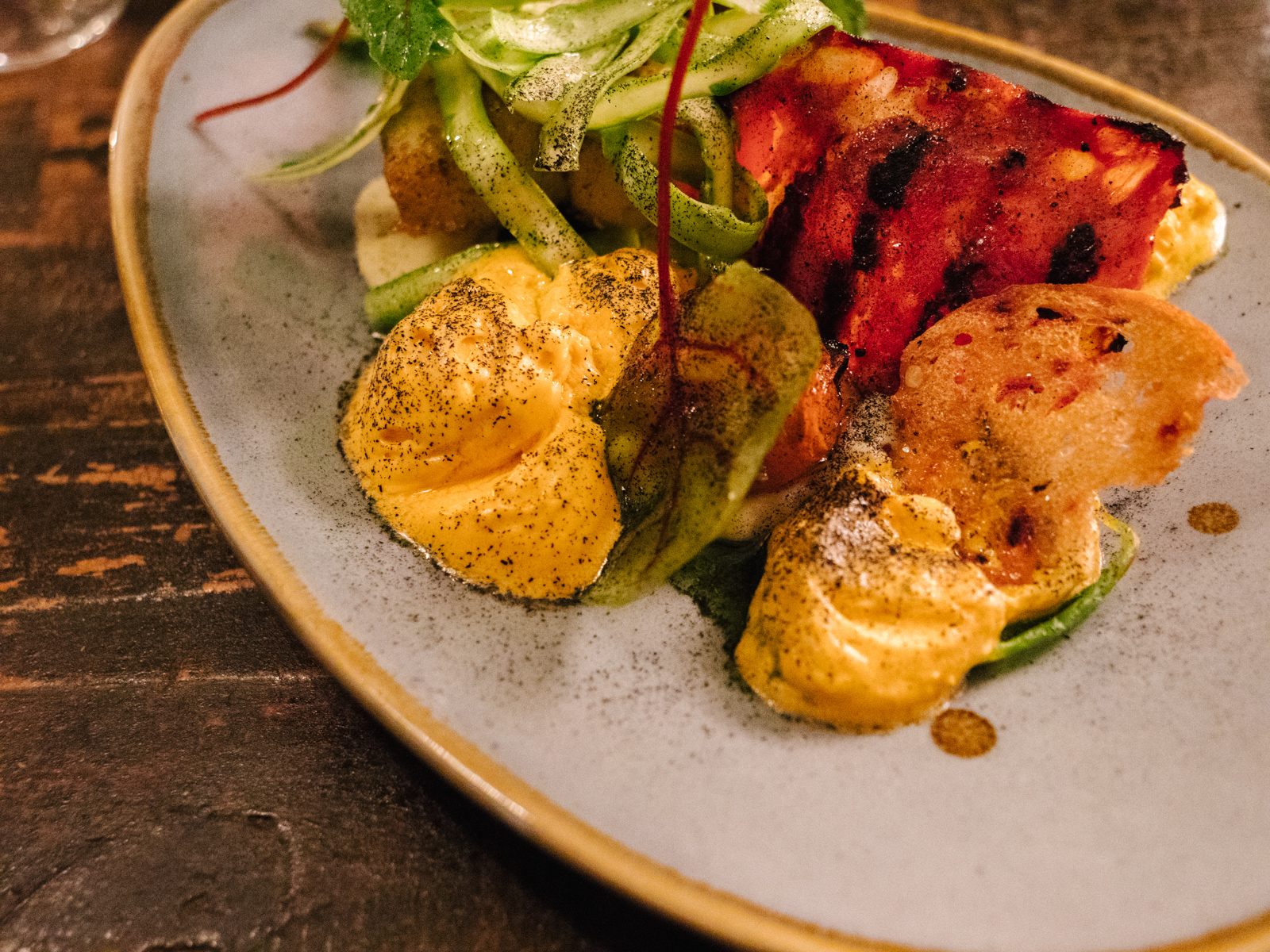 We’re treated to a series of intriguing and varied desserts—a herbaceous skyr comes with a twist of lime, the mango creme brulee is crisply tart, and at some point in the series, popping candy is involved. Fannar clearly has fun creating every single dish, and so do we, puzzling over the unexpected flavour combinations and unusual ingredients. Eating at Tryggvaskáli means buckling up for the ride—and being prepared to loosen your belt a notch afterwards.