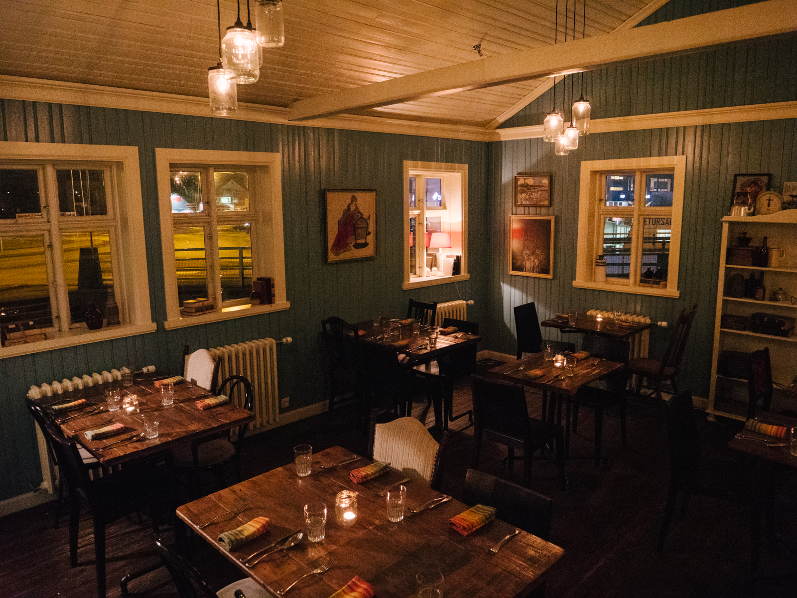 The main reason for our trip, however, is to taste something else. Tryggvaskáli is a lauded restaurant located in an 1890 house that was the first hotel in Selfoss. Now a listed building, the interior layout has stayed the same throughout the decades and various uses. It sits just over the roundabout from the hotel on the banks of the river, and something about its placement feels perfect for an inn.