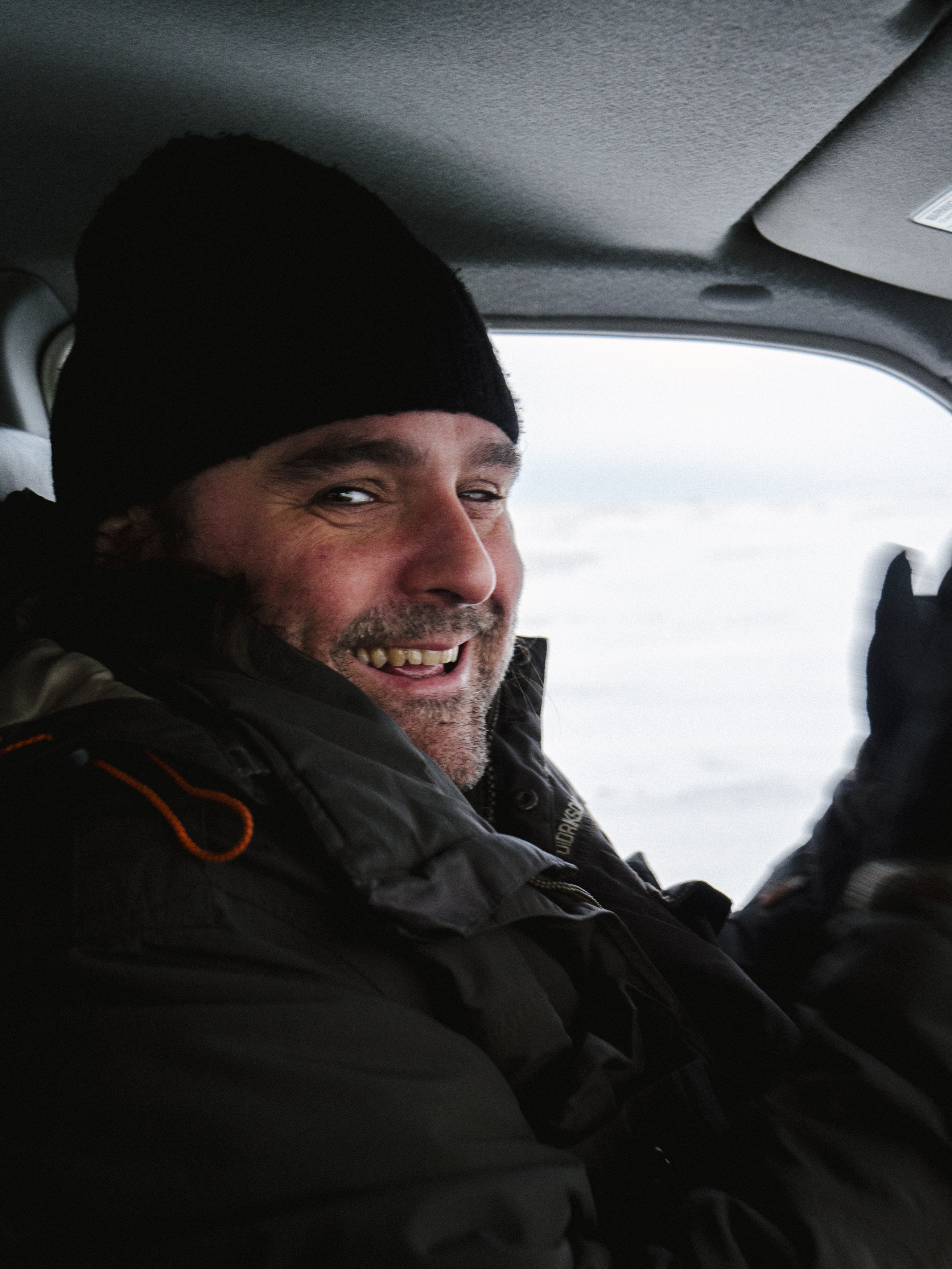 With few hours of daylight remaining, Villi warms up the engine of his modified jeep. We set off briskly, rounding the top of the the lava field and plunging down onto the black flats of the Sandur valley. Villi explains the geology and history of the area as we go, including colourful accounts of the bandits who once lived here. He’s an engaging storyteller with an infectious enthusiasm for the region.