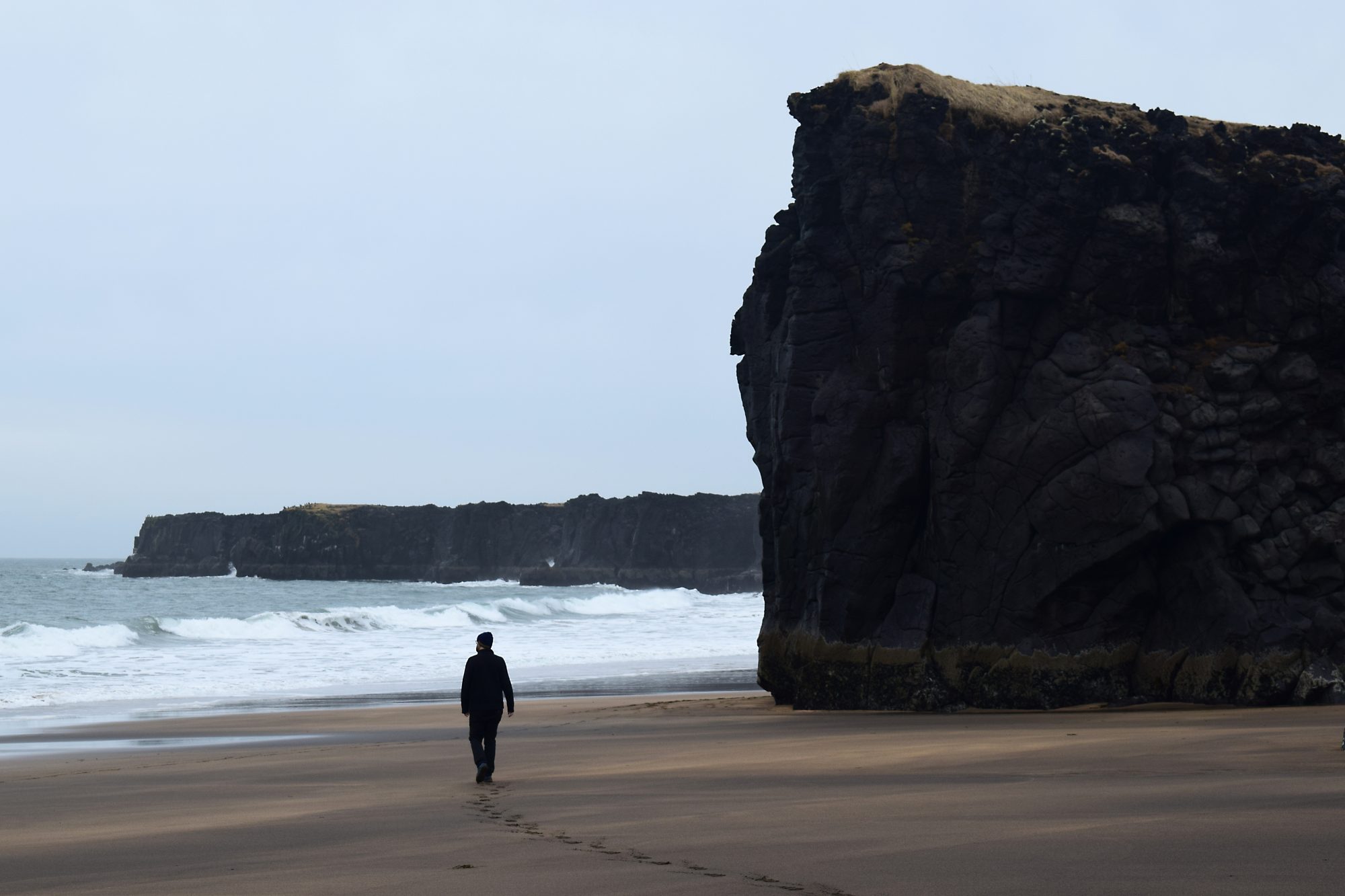 This wide cove on the very northern tip of Snæfellsnes is a truly beautiful spot. Down a windy dirt track, past a towering radio antenna—one of the tallest structures in Europe—there are several parking spots to choose from, with each one offering a walk to a rocky outcropping, or a route down onto the white sand below. The tide crashes in ferociously, and there are rock pools to explore, boulders to meander between, and a view out to sea, with nothing between you and the Arctic.