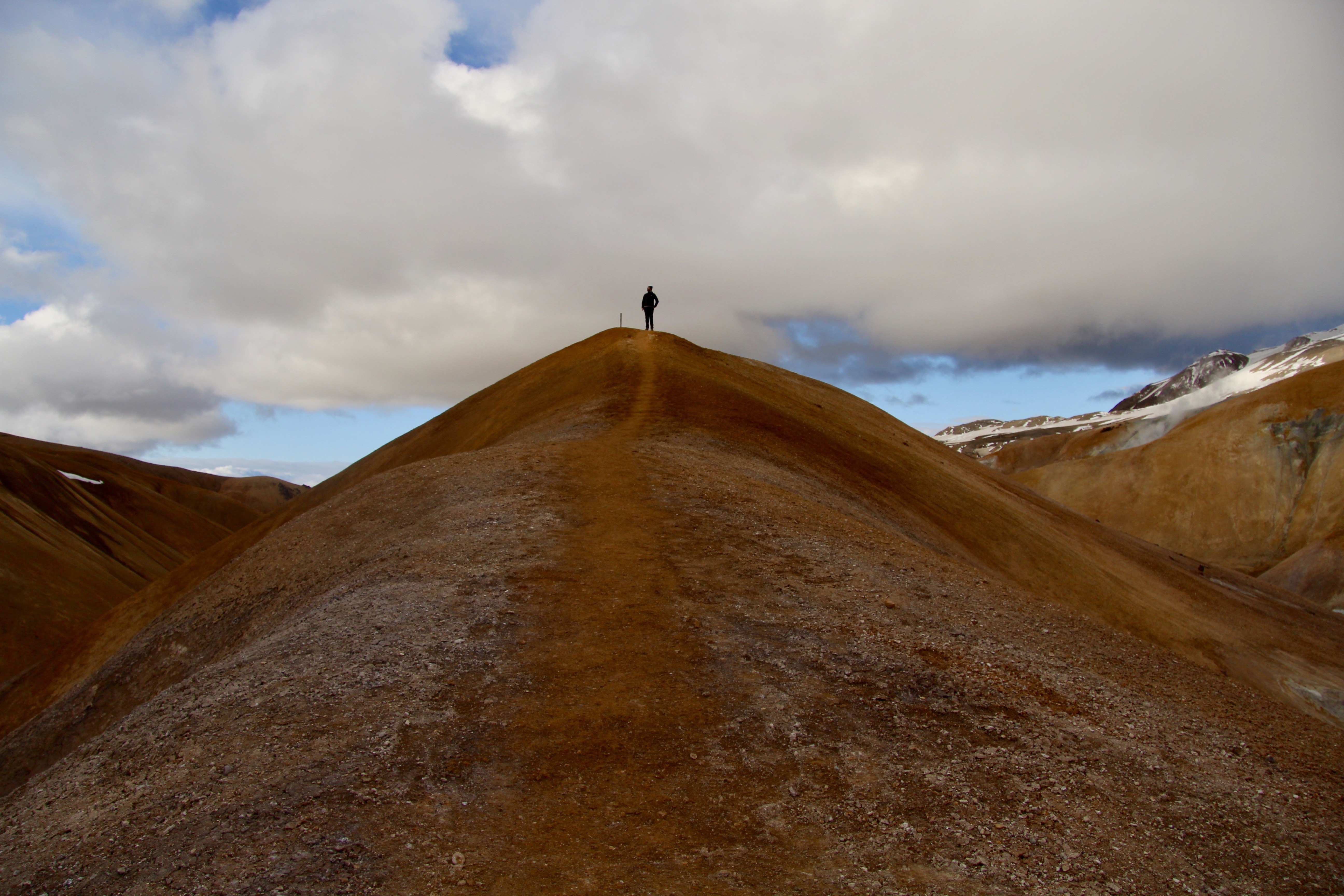 Up and down hills we wander, watching the northwest sun play with clouds. The landscape shifts its warm colours with each dip of cloud shadow. Fumaroles and mud pools fill the slopes of the rhyolite hills. Time slides past us.