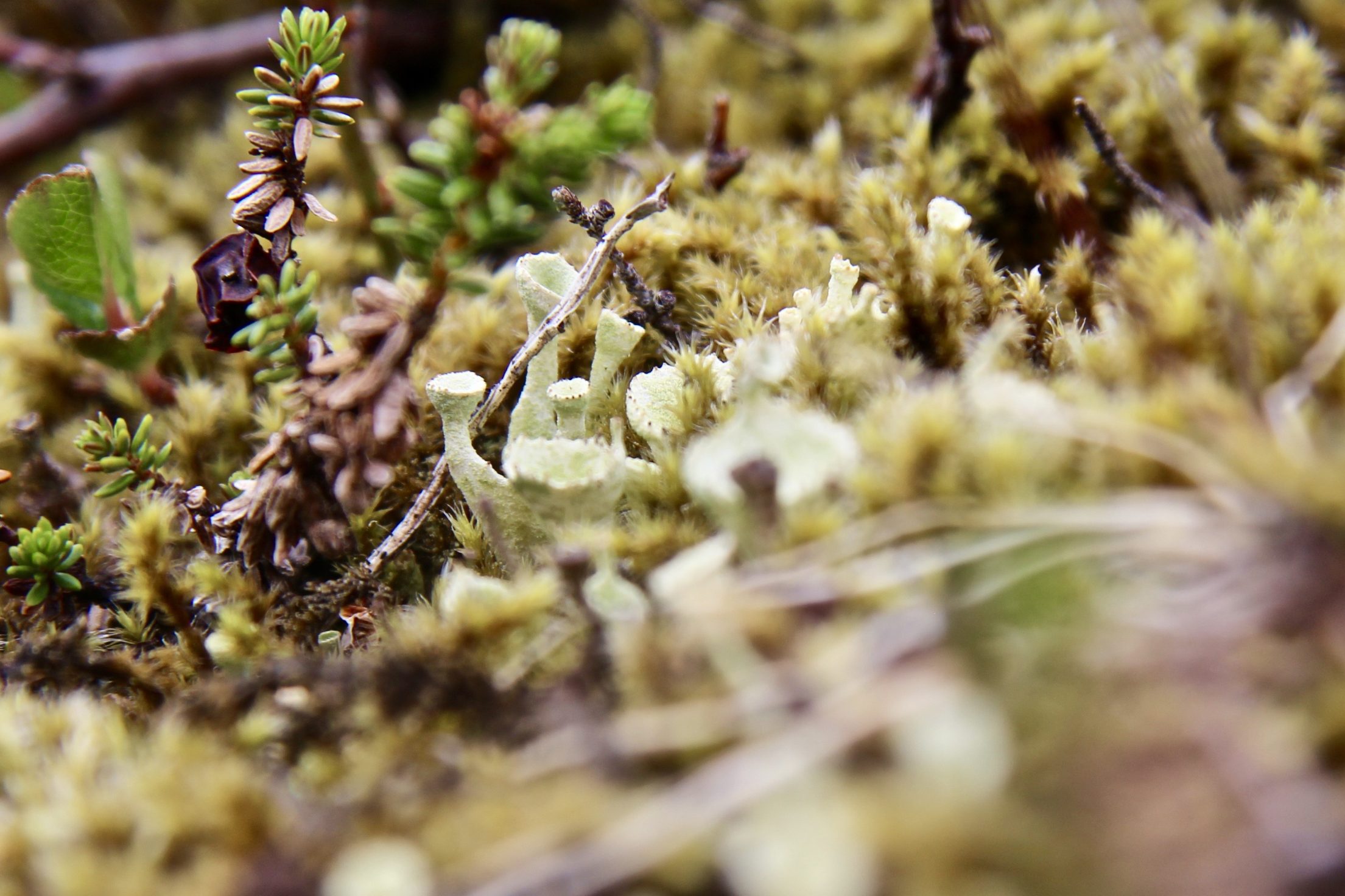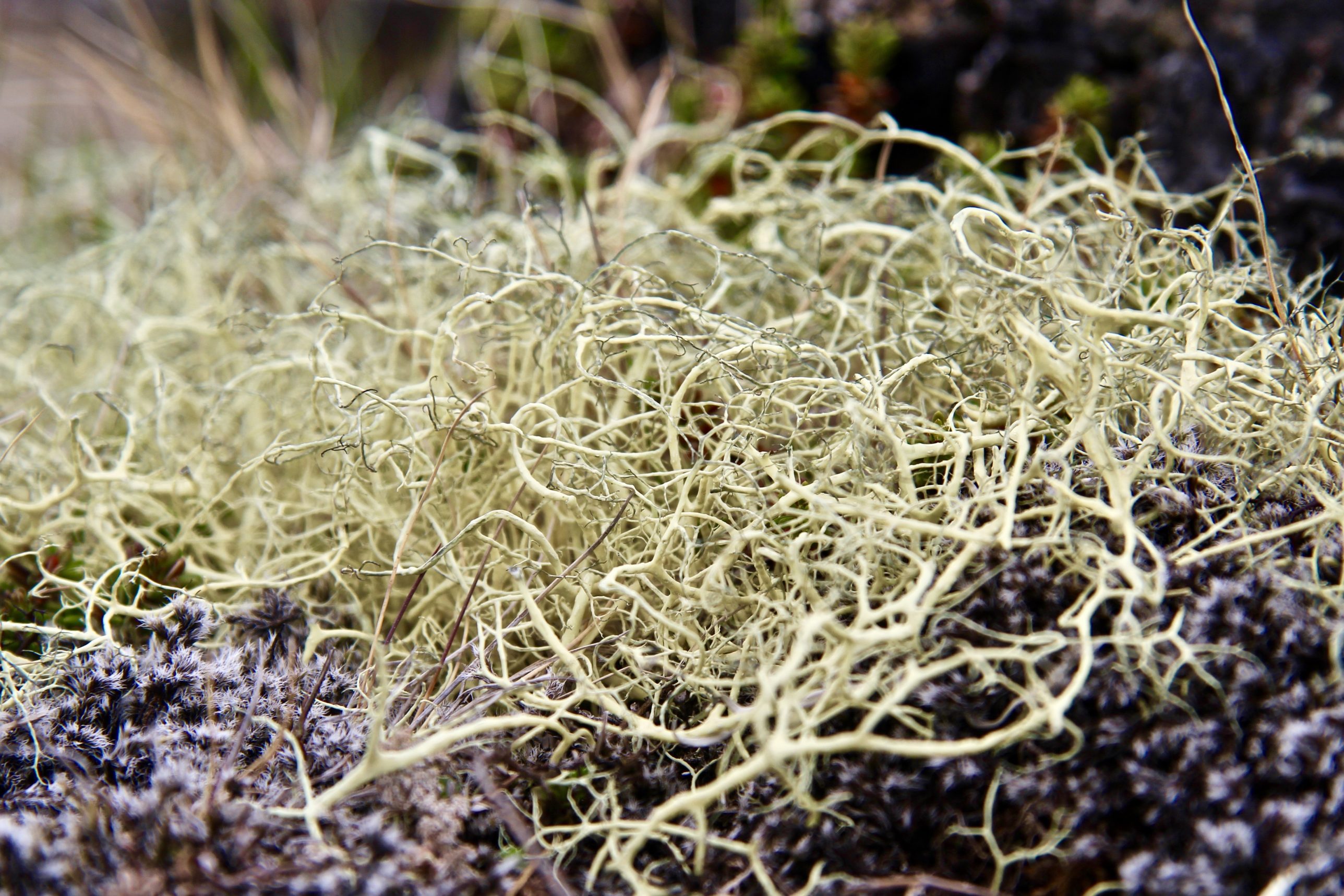The knoll itself is a haven for lichen and moss. We spot tea-cup lichen tiny enough to hold dew for a fairy’s drink. Reindeer lichen proliferates. Black lichen curls a witchy bouquet on basalt. The intimate witnessing activated by our geothermal walk extends to close encounters with these lava-field inhabitants. We are once again warmed by the abundance of curious lives who flourish in the heart of Iceland.