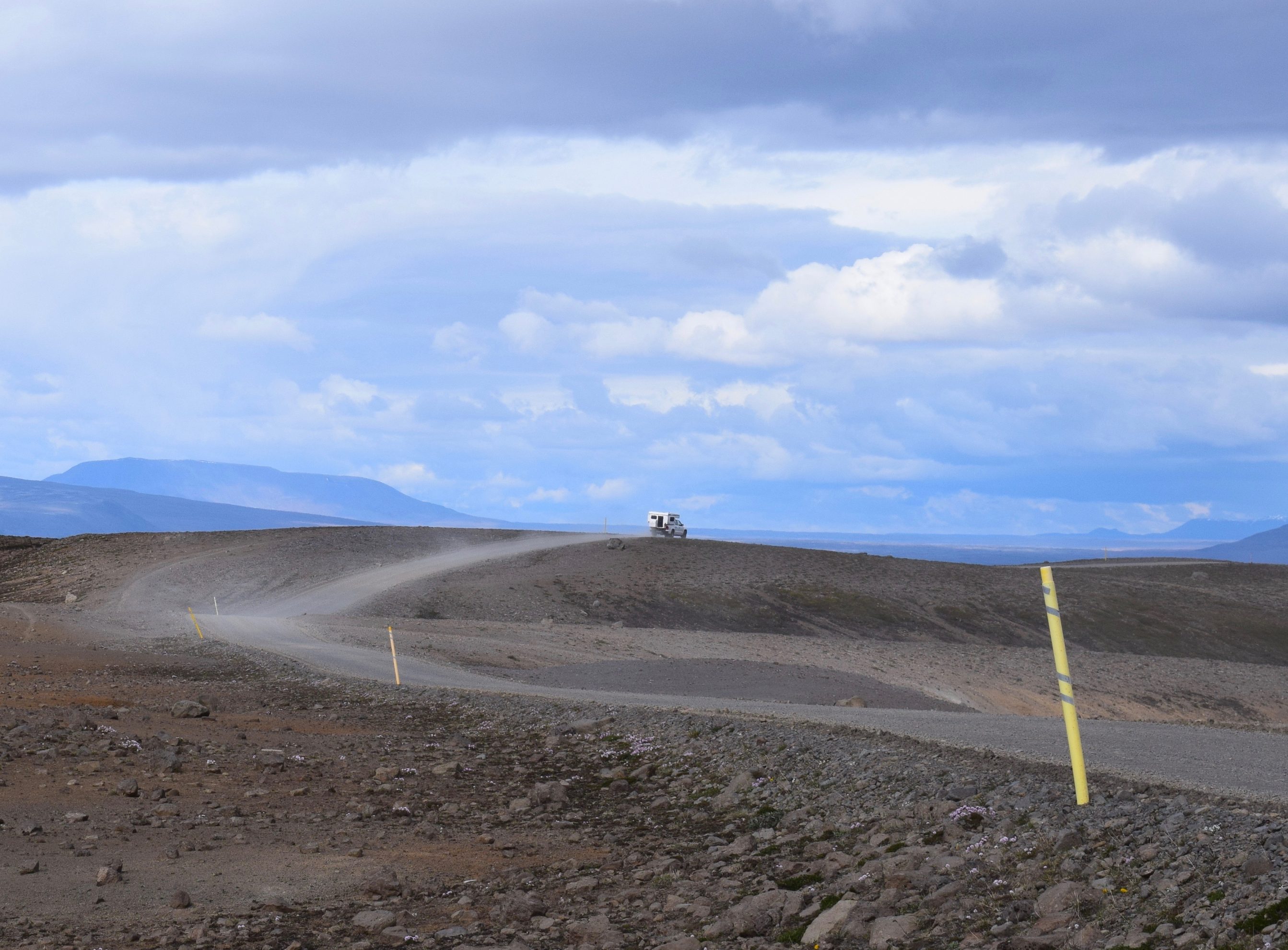 When the last patch of lupin fades from sight, we know we have officially entered the volcanic desert of Iceland’s Highlands. Here, the lack of rain is palpable. Plumes of orange dust balloon behind every 4×4 driving the Kjölur trail.