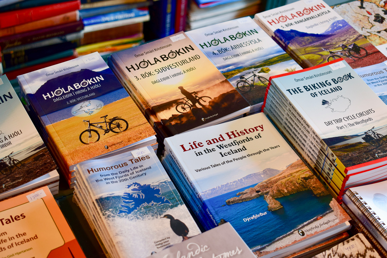 The books today are mostly second-hand, and sold by weight for 1,000 ISK per kilogramme. The selection spans everything from nature to medicine to competitive swimming, and from Icelandic-language textbooks to Bridget Jones—and two copies of the David Beckham autobiography. “One of them is in Icelandic,” says Eyþór. “It’s probably the only book I have in two languages.”
