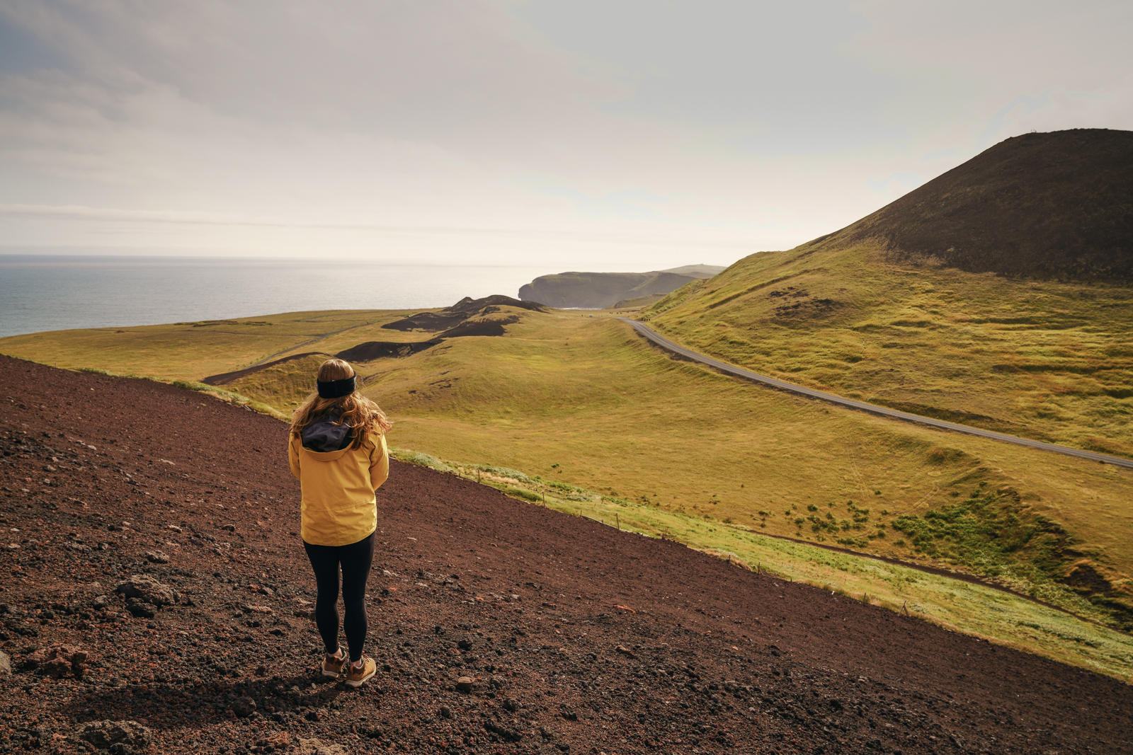 The short, steep hike up Eldfell offers panoramic views of the whole of Heimaey and the surrounding islands, including Surtsey. Another product of violent volcanic activity, Surtsey appeared as if by magic from out of the ocean in a matter of days in 1963 and is now a highly protected UNESCO World Heritage Site. From the top of the hill, it is possible to make out its outline in the distance, looking like the curved side of a guitar lying submerged in the water.