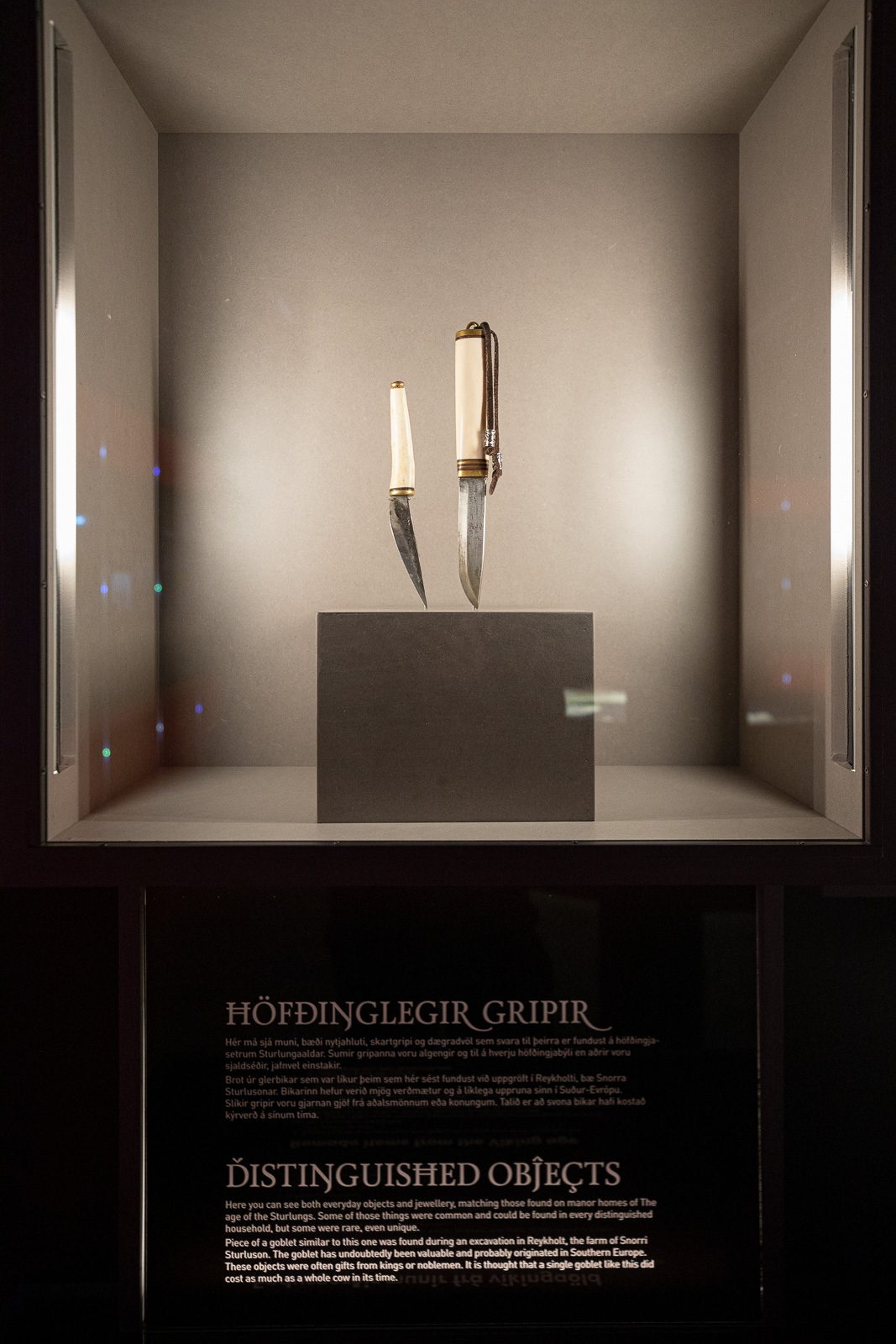 Following my military victory, I continue into a large room outfitted with display cases full of weapons and armour. Steinunn tells me that even though all of the weapons are enclosed in glass, and replicated from the middle ages, the government of Iceland has the museum on a watchlist. The arsenal is extraordinary. Swords, spears, axes, and suits of plate armour all look impressive as an ethereal soundtrack plays in the background.