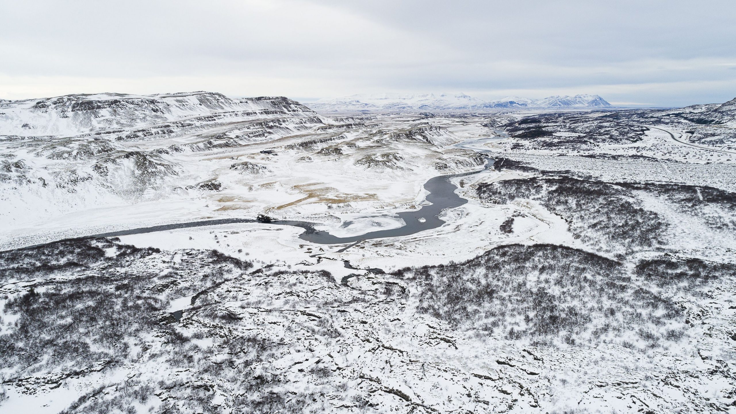 Heavy winds kept me humble, as I struggled to catch my breath after reaching the summit. To the south, the little town of Bifröst looked like a tiny model village, and snow-covered mountains in the distance touched the sky. To the north, the second largest crater rested between two roads diverged. The scenery reminded me of the painting. In my mind’s eye, the river became a road, and I wondered if Svavar found his inspiration at the top of this same crater.