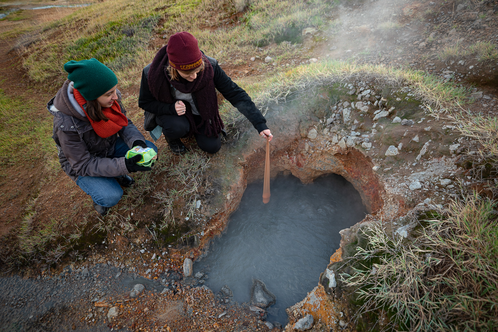 But then it was time to eat. We grabbed our six-pack of eggs and two pairs of nylon stockings, desperate to fulfill our dream of naturally boiling eggs in the earth. But where to find a good boiling station? To our dismay, the geothermal park—which offers a special egg-boiling hot pool—was closed on the day of our trip, so we opted to look on our hike for a natural, off-the-beaten-track hot puddle to serve our needs.