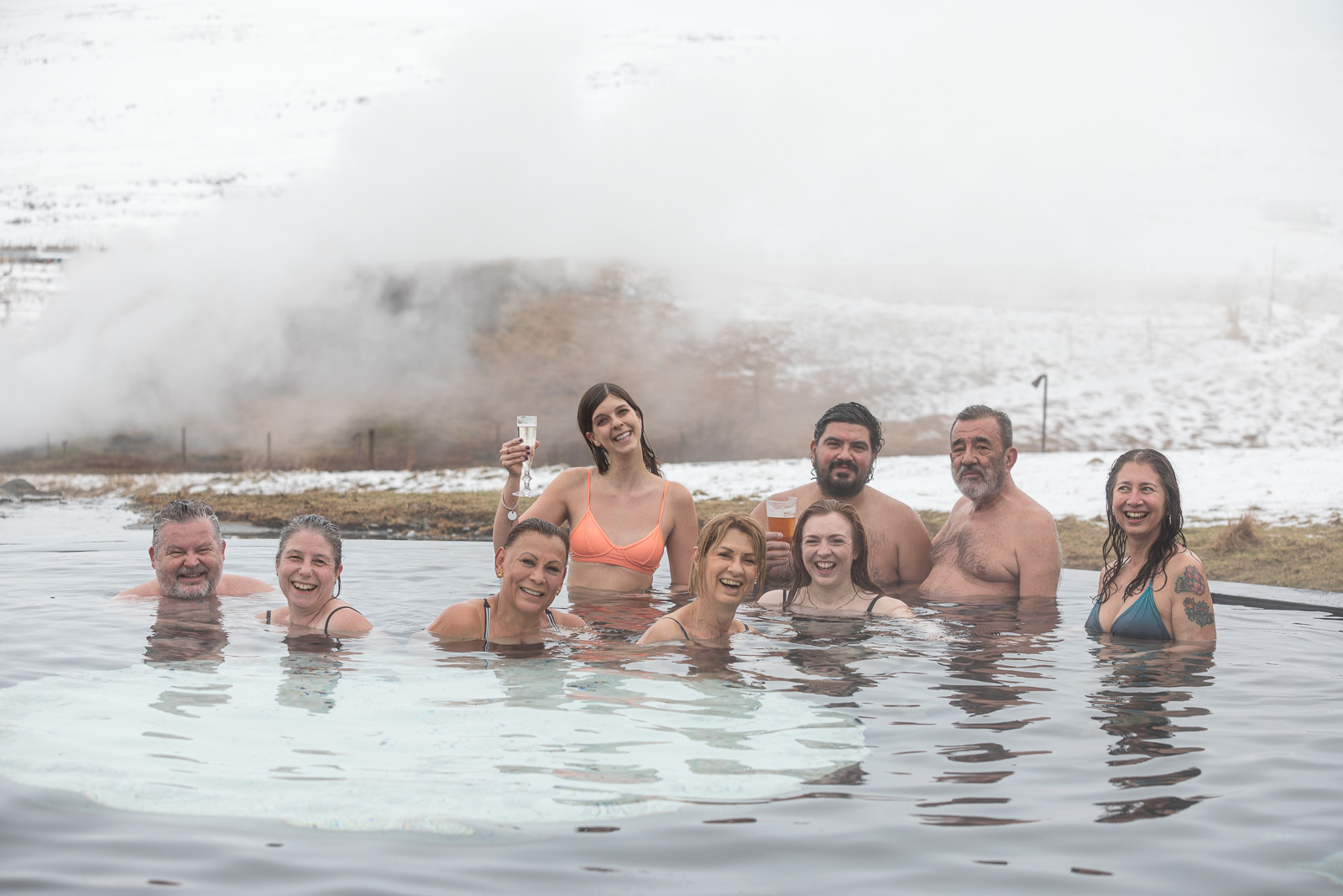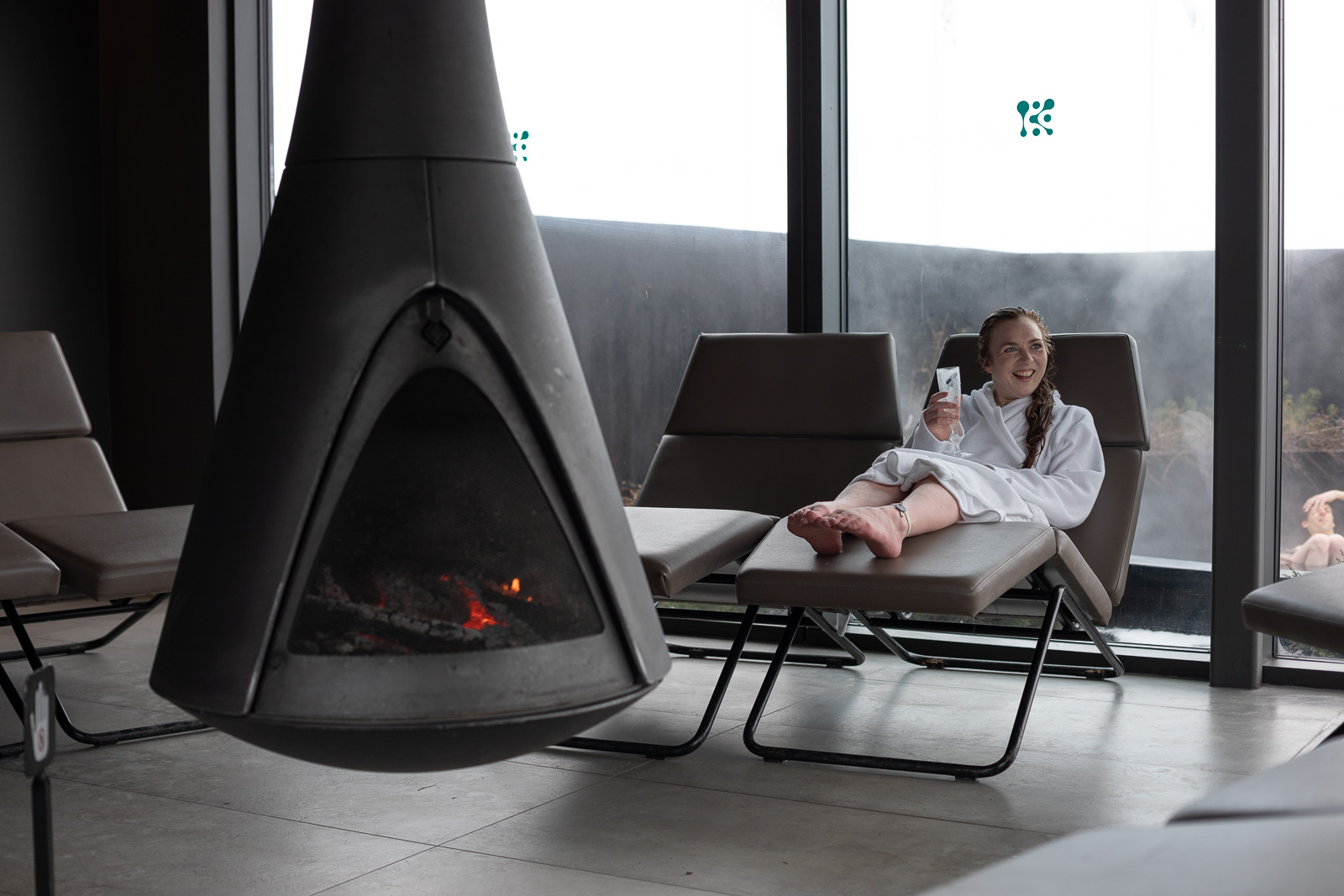 Hunger thoroughly sated, and already a far cry from the frazzled versions of ourselves that had arrived an hour before, it was time to head to the pools. The changing rooms alone were a zen experience, kitted out with Sóley Organics products that smelled divine. Stepping outside into the cold air was bracing, but you soon reach the warm, inviting waters. Lying back, prosecco in hand, it was impossible not to relax.