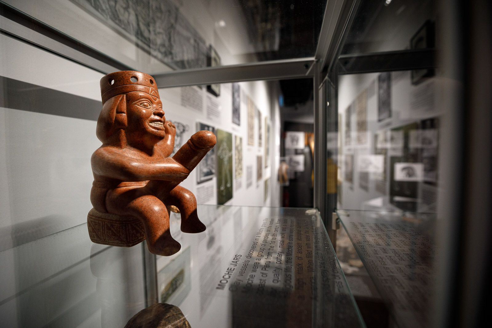 Moving beyond the wild animals, visitors find themselves in a part of the exhibit displaying the curators bowtie, codpiece and other paraphernalia crafted out of the penis skin of a sperm whale. This is followed by displays of carved sculptures of penises, including a bronze phallic amulet from 1st century France, a winged phallus from Pompeii and a carving of Osiris’s penis. This area is accompanied with information on various historic rituals, folklore and practices centred around fertility and penises.