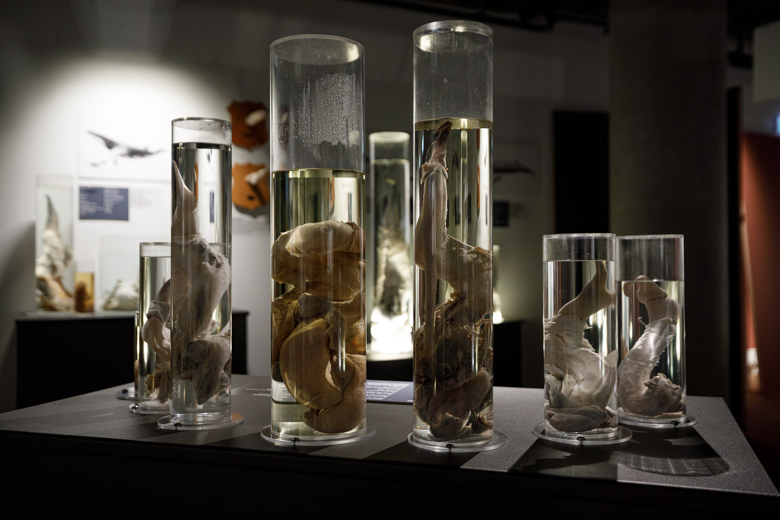 The fact, as told by Sigurður, that walruses have the largest penal bones of all animals is quickly forgotten when entering the next room, displaying samples in increasingly larger containers, displaying the phalluses of a narwhal, killer whale, sperm whale and blue whale. Whale erections — which visitors learn have refractor muscles that serve to hold the penis inside their mate’s body — are mounted on wooden blocks on the walls like trophies in stuffy hunting lodges.