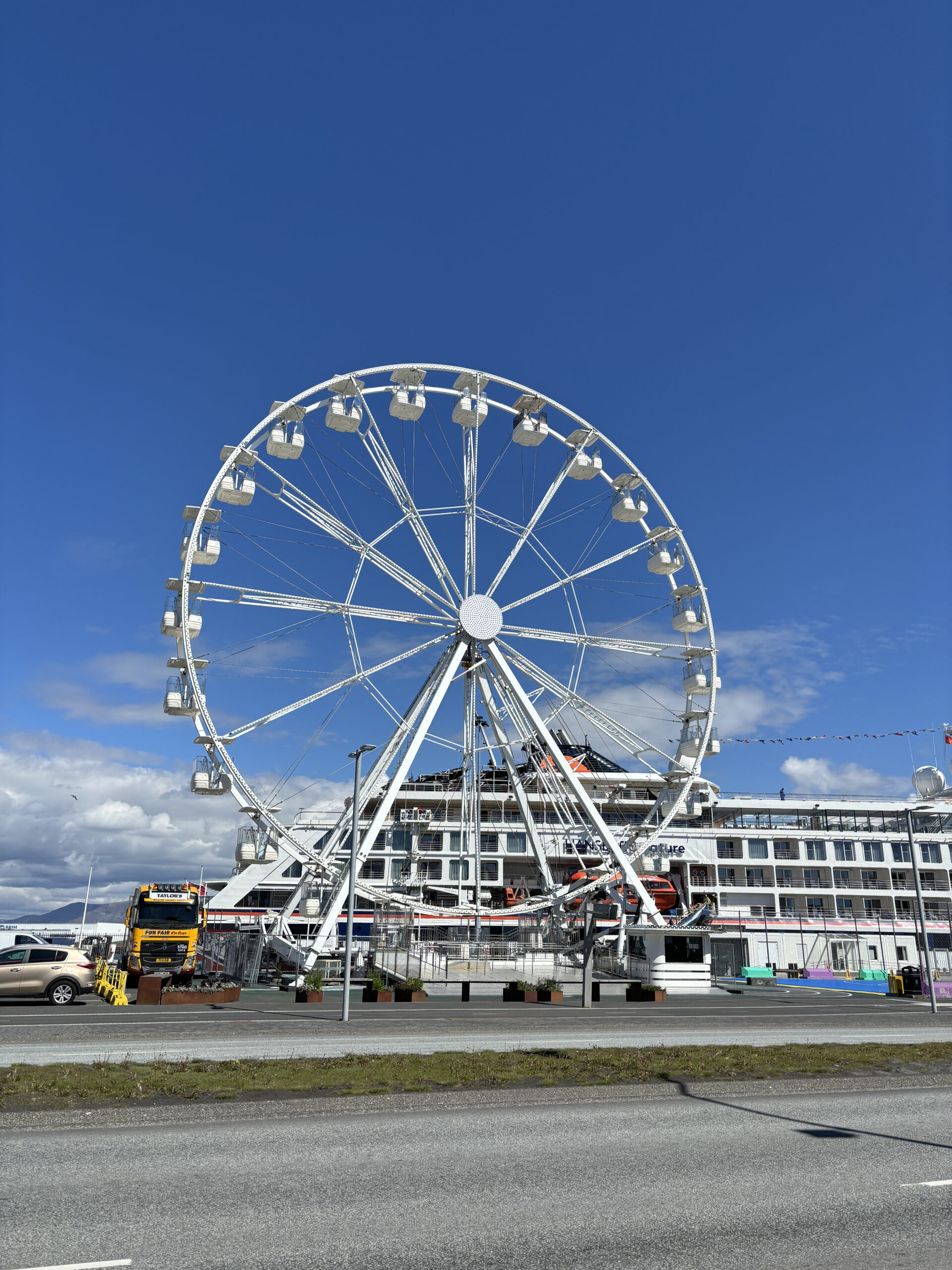 However, the view over the city centre and toward Hallgrímskirkja in particular was beautiful. Getting a birds-eye view of Reykjavík’s iconic church had previously been reserved for those visiting Perlan’s viewing deck, so the vantage point from the Reykjavík Wheel was lovely — in one direction. Since the wheel has been erected right beside a docking point for massive cruise ships, even from the highest point of the trip and standing up in my compartment, the view of Mount Esja and the glistening architecture of Harpa is obstructed.