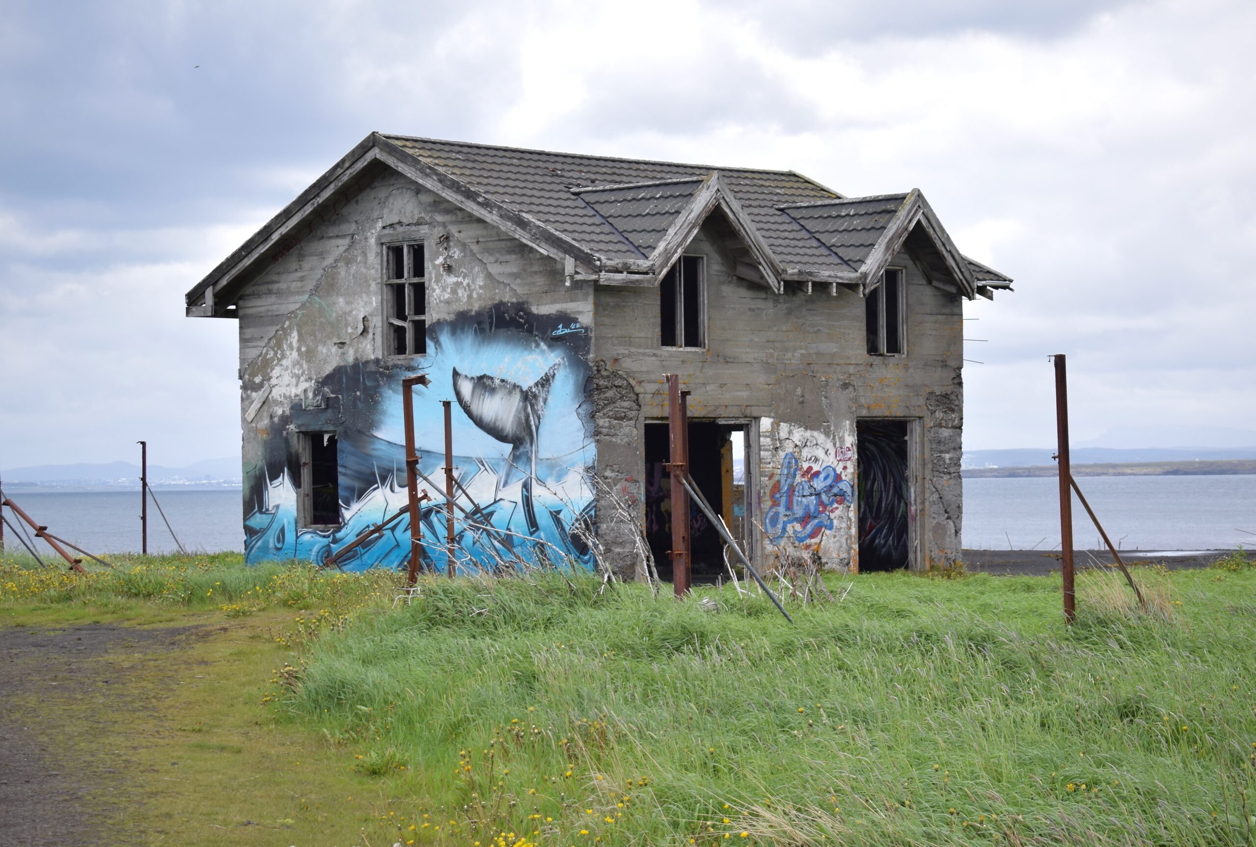 It’s a grey and overcast summer afternoon when we peel away from the traffic to join route 420, a faint line on the map that traces the northern coastline of the Reykjanes peninsula. Despite its proximity to the airport road, merging onto it immediately feels like entering a pocket of wilderness, with rocky outcrops slowly splitting open by the roadside. A smattering of derelict buildings and colourful cabins are serenaded by the territorial shrieking of arctic terns who dart and skim over the lonely road.
