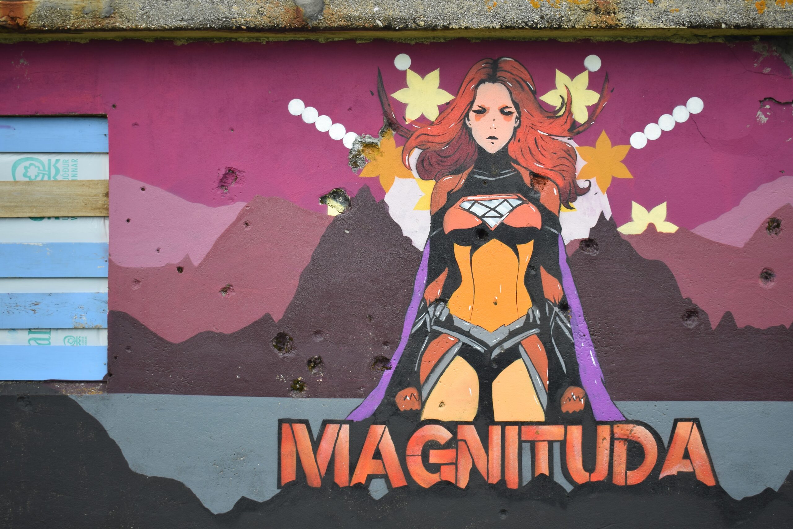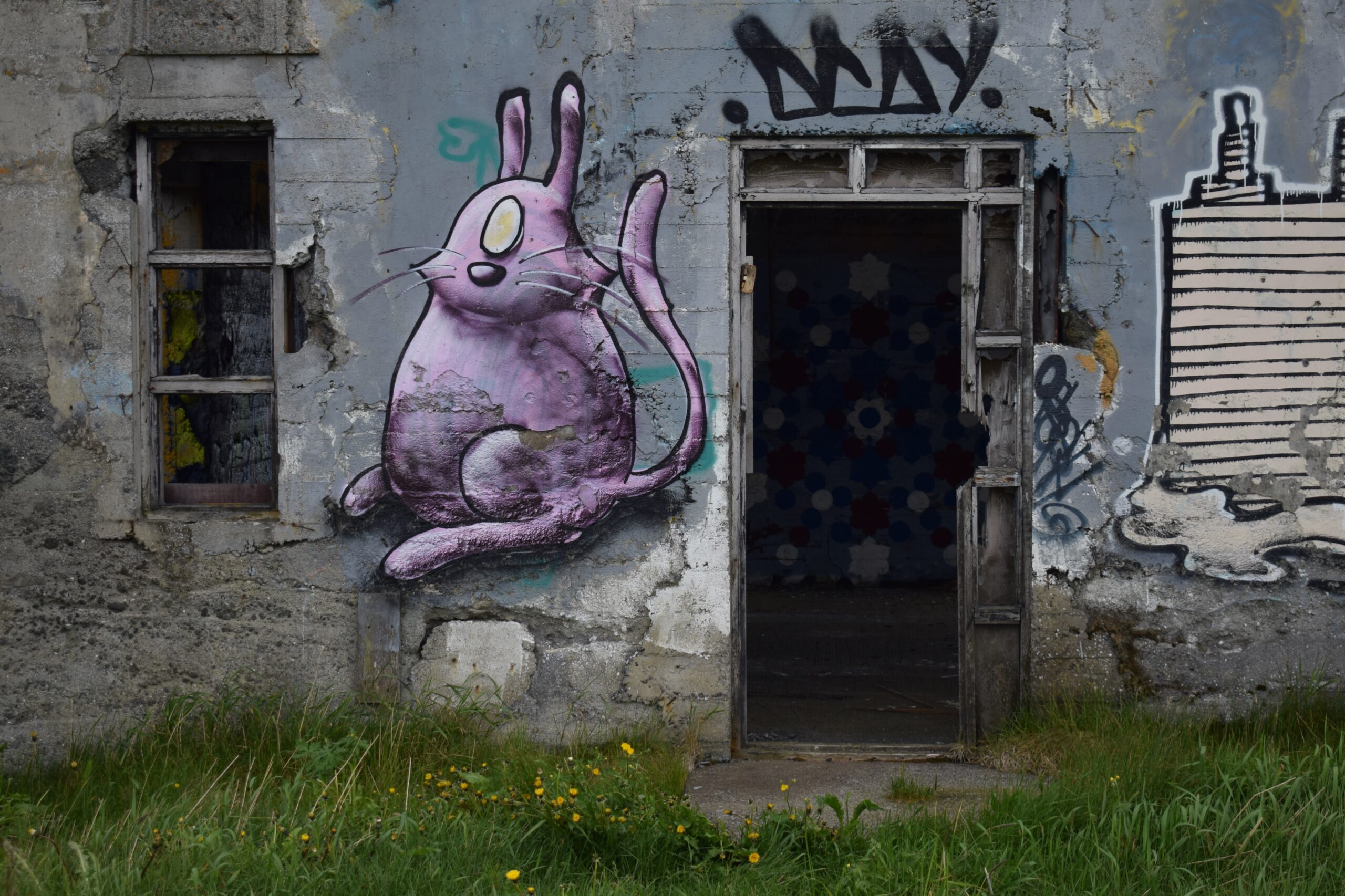 The first seaward turn is a gravel track leading to a half-finished house that juts up against the roiling ocean. It stands windowless and doorless, exposed to the elements and covered in graffiti and murals — a diving whale, a hummingbird and a tiger. A stencilled character called Magnituda is a cartoon figure who could equally be an obscure comic book hero or a creation of the artist’s own imagination. A cursory Google indicates it’s probably the latter. A pile of spent fireworks tells its own story and I imagine this remote spot at the dead of night, illuminated only by a campfire and sudden, smoky bursts of light and colour.