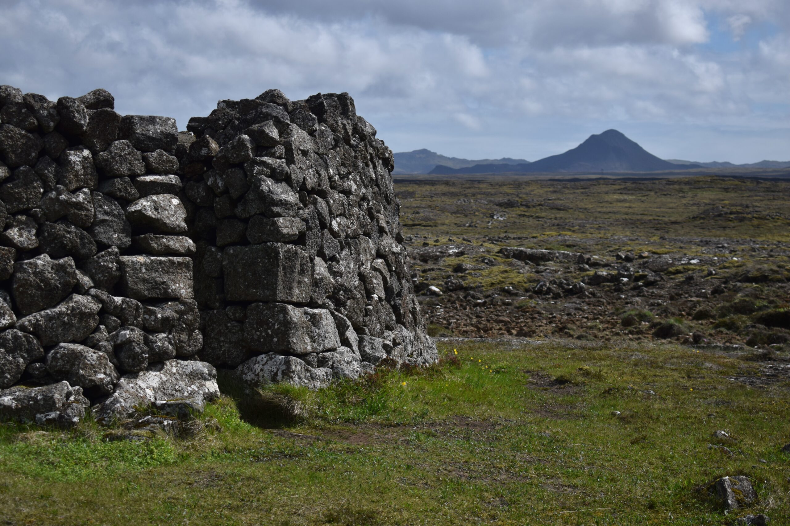 The combination of cairns, footprints and dilapidated trail markers get the job done. When Staðarborg comes into view, it’s like an unexpected turret crowning a small hill. The site turns out to be a tall, well-kept stone ring, originally built to protect sheep from vicious winter storms. Its exact age is unknown, but it’s thought to be a couple of hundred years old.