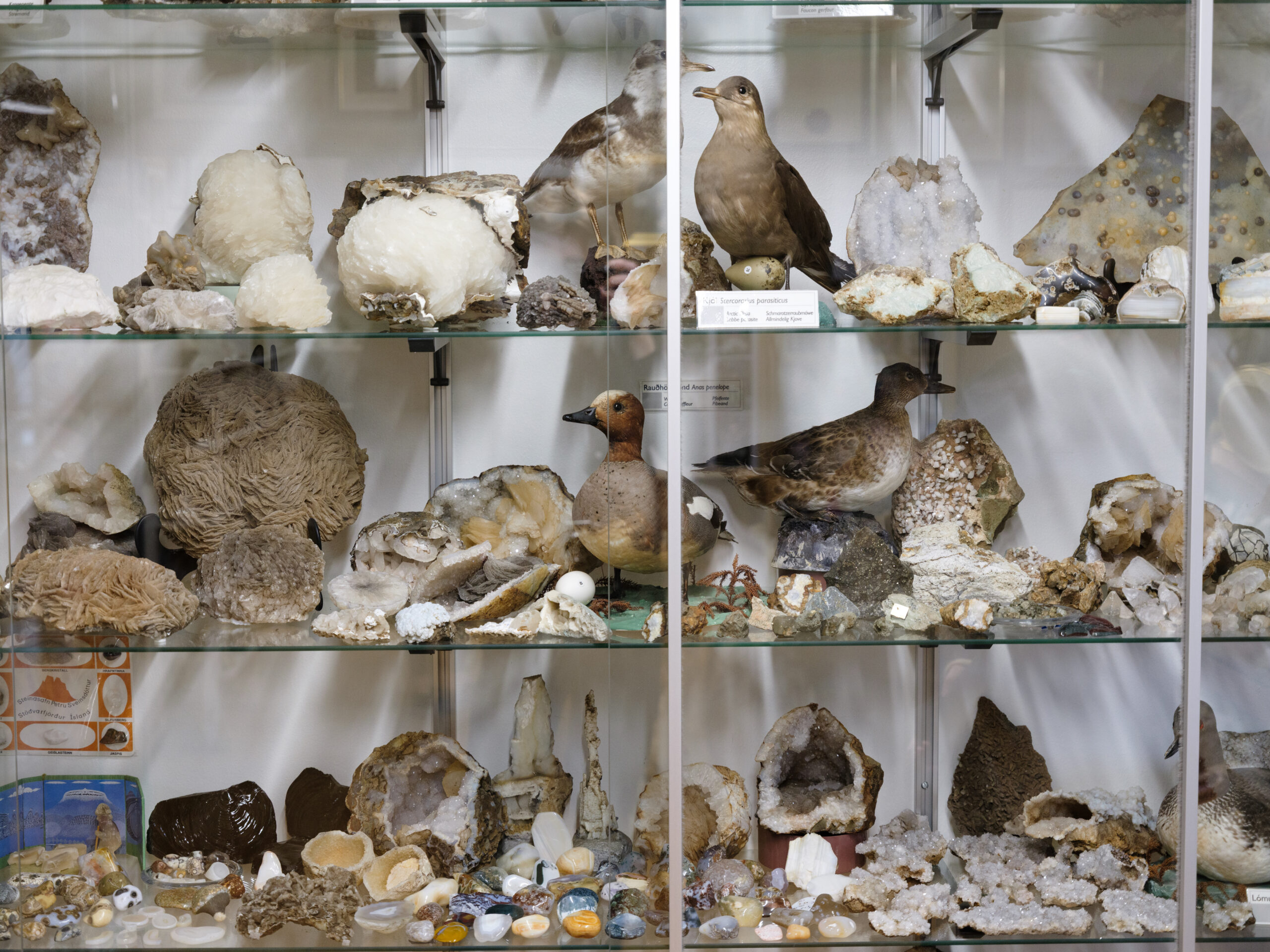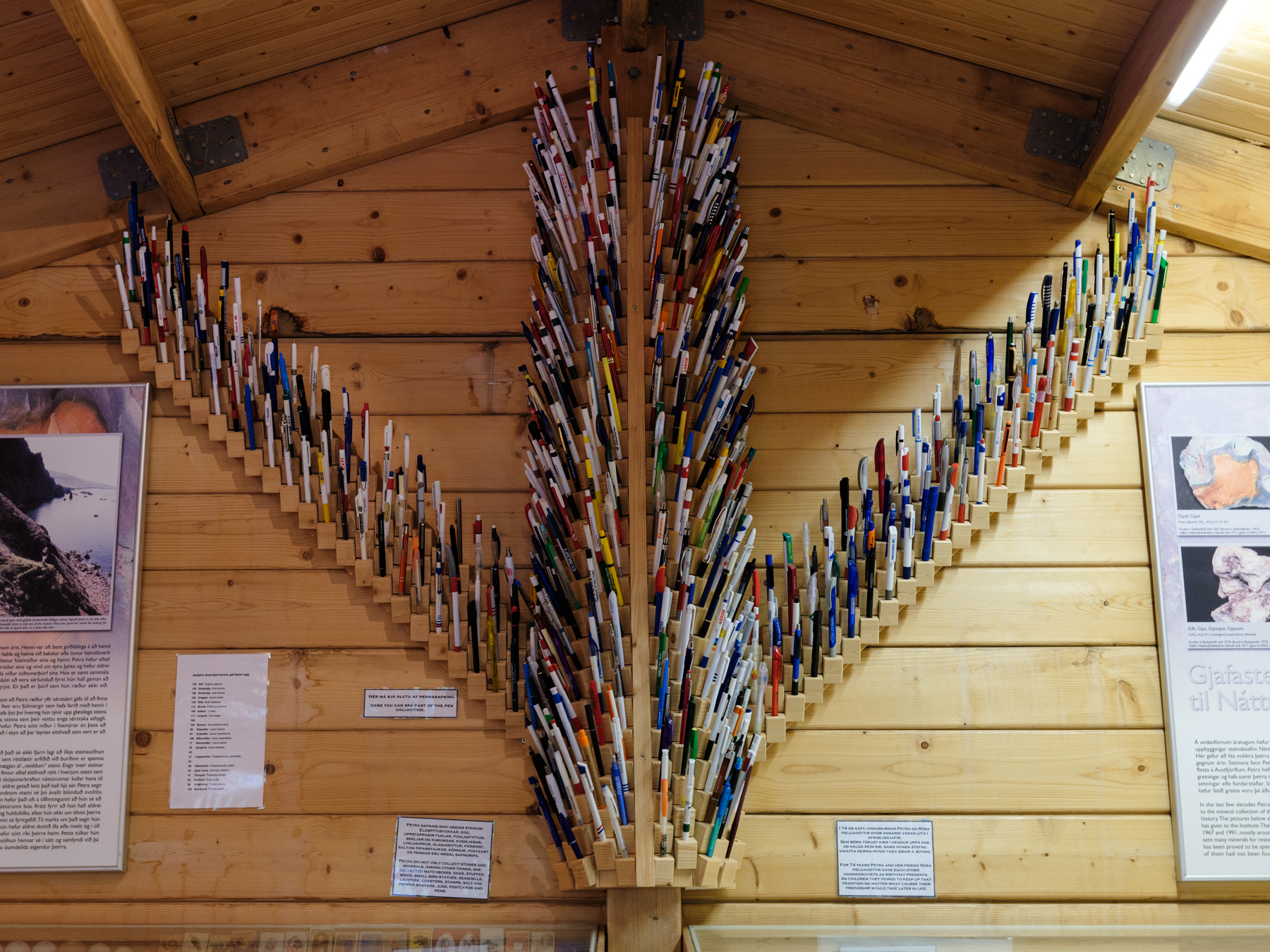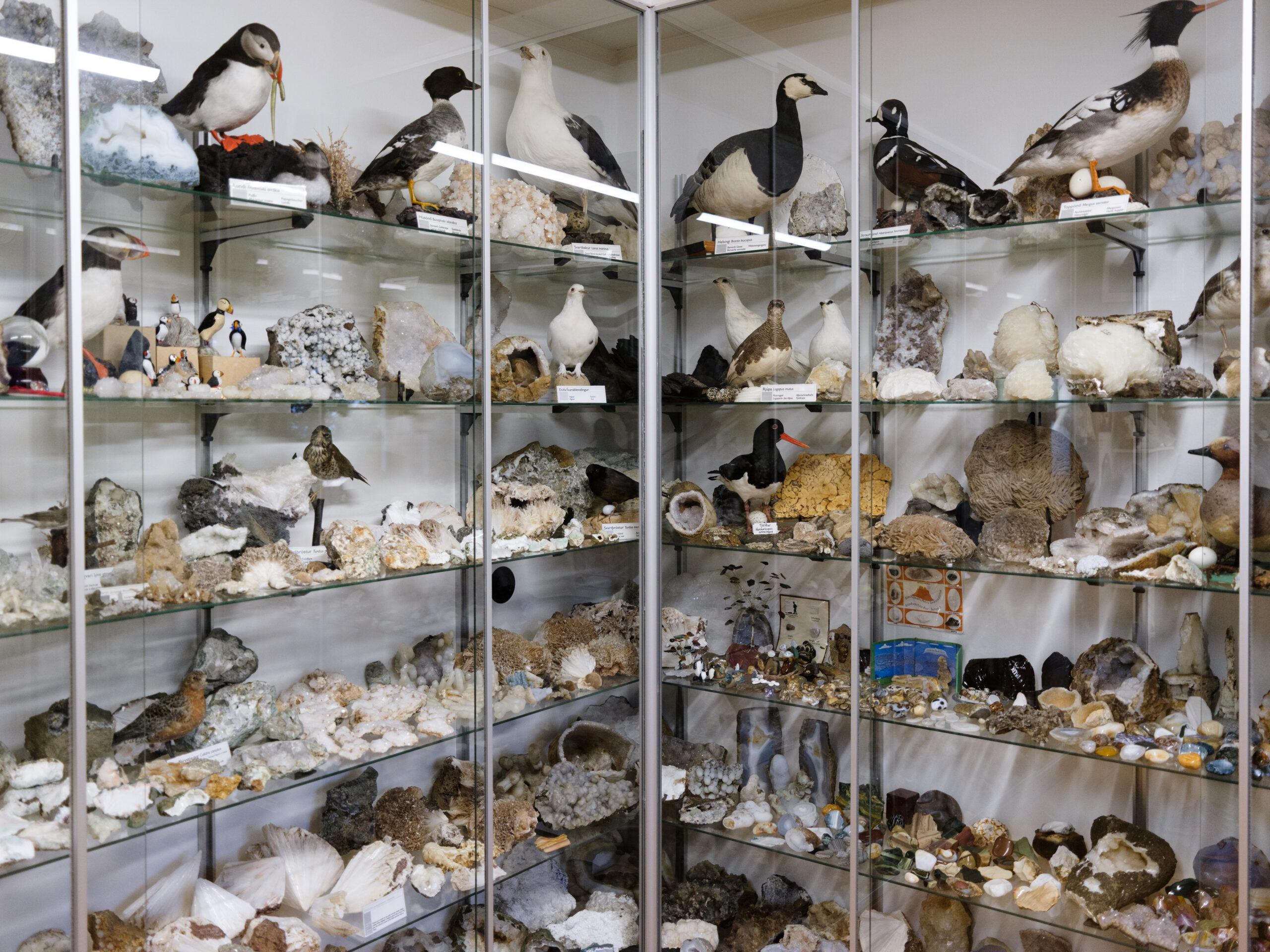 Inside the house, most of the space is now taken up by shelves lined with stones and minerals — mostly different types of quartz, in just about every colour imaginable. There’s lavender haze, turquoise blue, burnt orange, and a full spectrum of white and grey. Some of Petra’s original rooms have been preserved, offering glimpses into the home as it once was — filled with family photos, embroidered paintings, and other memorabilia, including Petra’s Order of the Falcon, awarded to her in 1995 by Vigdís Finnbogadóttir.