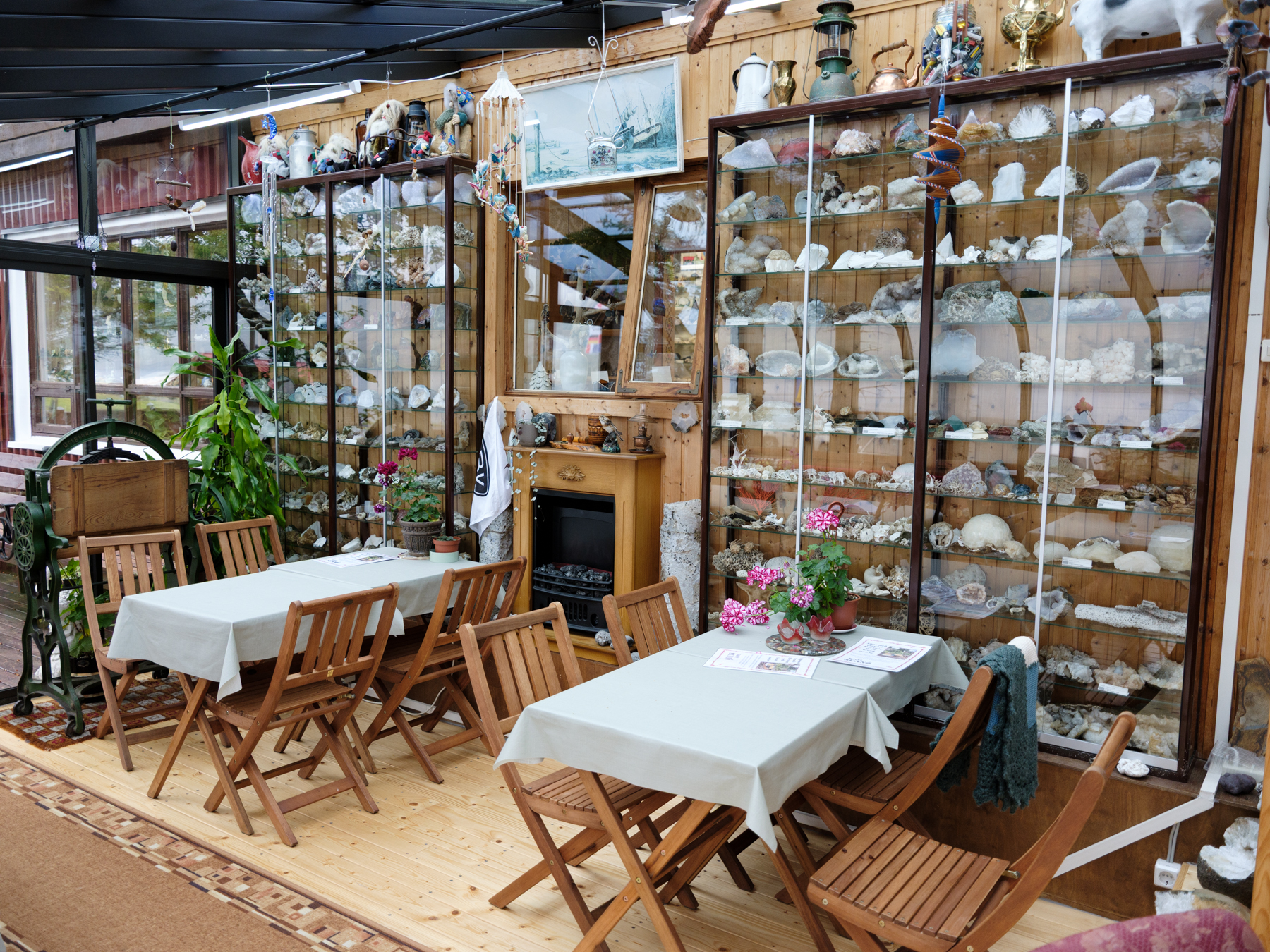 And it wasn’t just rocks. Petra also collected pens, matchboxes, cups, handkerchiefs — even seashells — all of which are now on display in a dedicated corner of the museum. There’s also a small café on site, offering soup, pastries, sandwiches, and coffee — served either in the garden or the house’s sunroom.