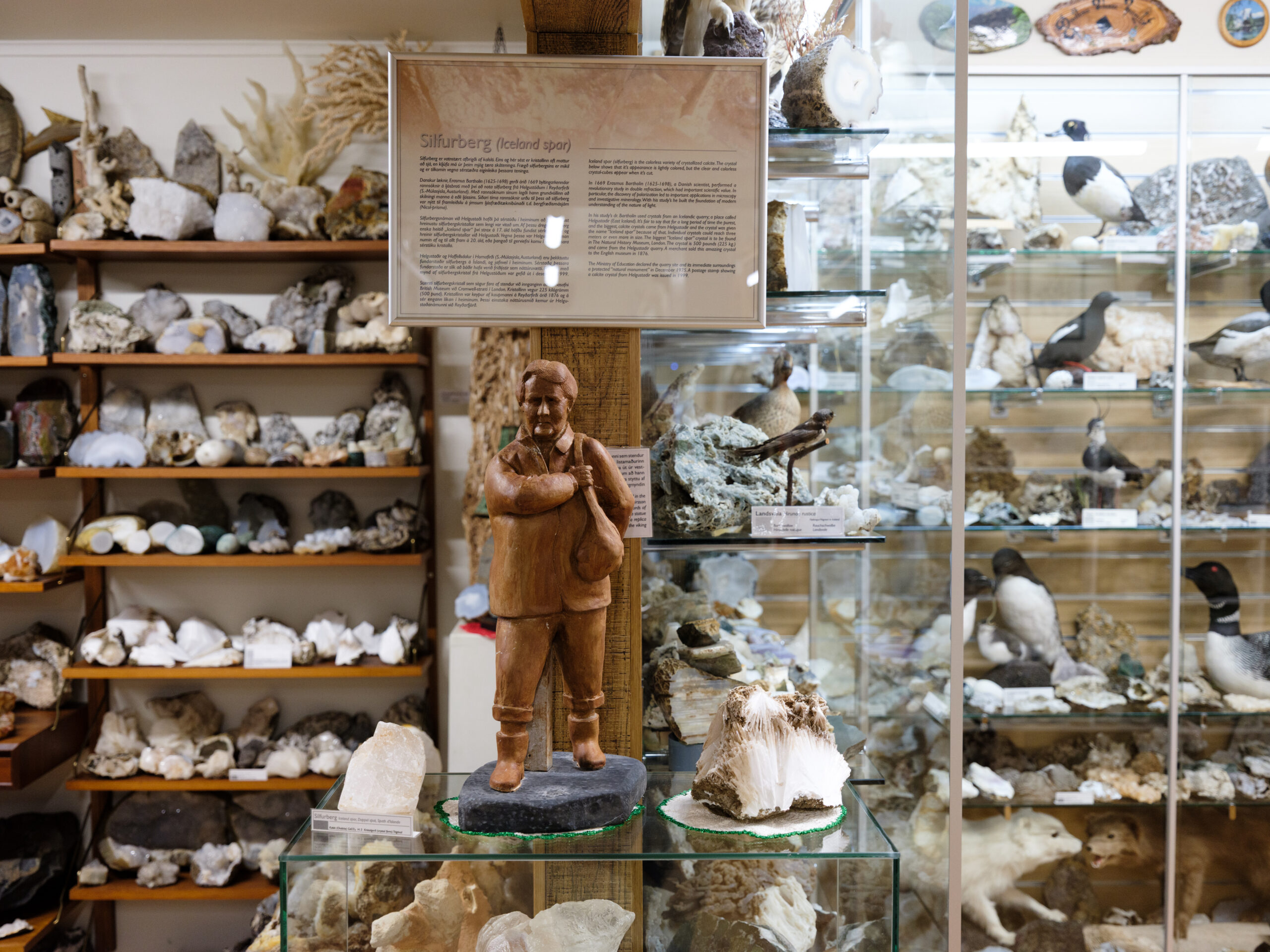 The town had been on my list for a while, for two reasons. First, the Fish Factory Creative Centre — a former fish processing plant turned multidisciplinary arts hub. It hosts residencies in everything from visual art and printmaking to sculpture, music, and photography, drawing artists from all over the world to this far-flung corner of the country year-round. Second, Steinasafn Petru (Petra’s Stone Collection) — a museum packed with minerals and crystals gathered by the late Ljósbjörg Petra María Sveinsdóttir over the course of a lifetime. I’m still saving the Fish Factory for another visit, but on this short trip — just as the town was coming back to life after winter — I managed to make it to the latter.