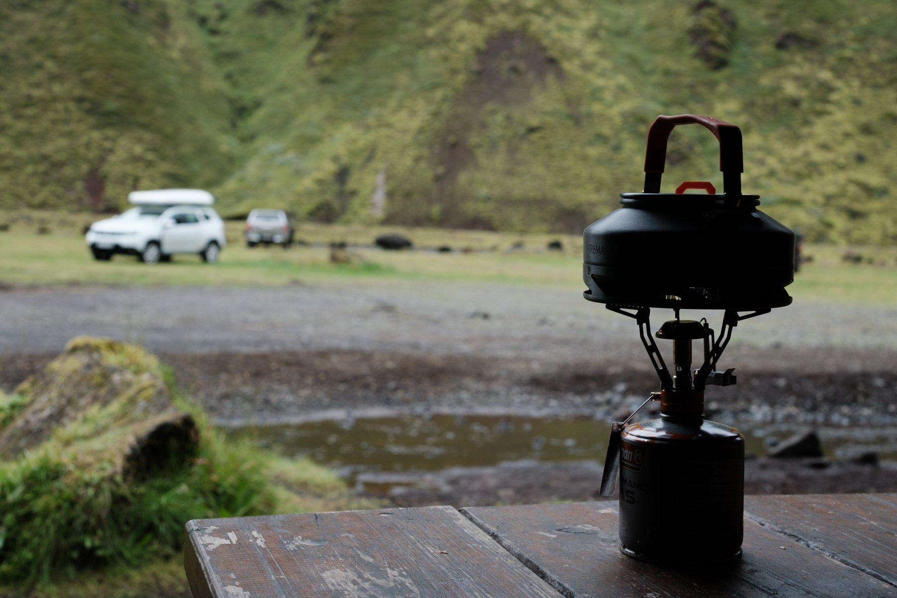 Surrounded by rocky, moss-covered hills, the campsite is sheltered from the highland’s often unpredictable weather. It feels as if someone has intentionally turned up the saturation of the greenery — a shade I’ve rarely seen in Iceland. Rather than harsh or unwelcoming, it’s lush, almost emerald green. It’s hard to explain; let’s just say it’s the kind of green you picture when you think of Ireland.