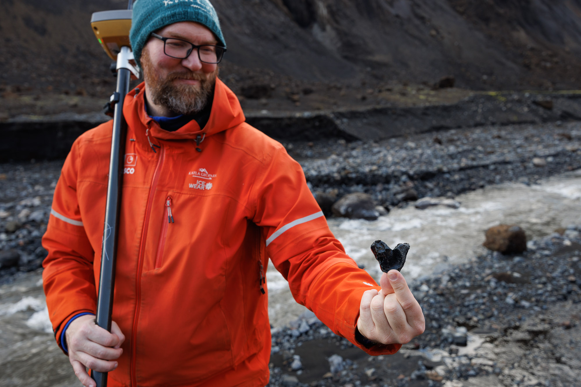 “What we’re going to do today is measure the glacial snout of the outlet glacier of Krossárjökull,” Jóhannes explains. Like the rest of the crew, he’s excited about today — despite being the park’s geoscientist, field trips like this one don’t happen often, as 75 percent of his work is spent in the office. “And then later on, we’re going to go down to Landeyjasandur, and measure one or two profiles of the coastline.”