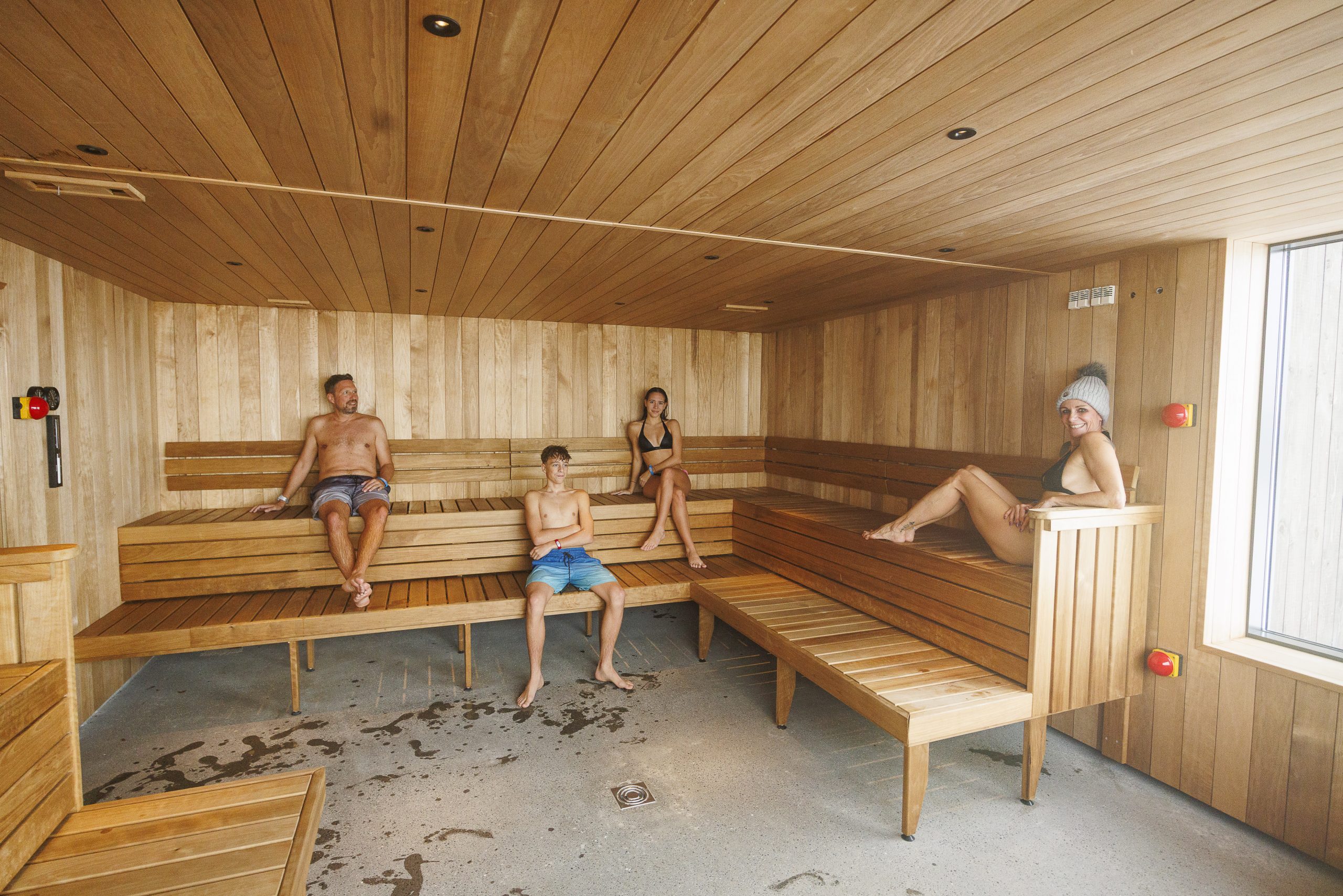 The lower deck of the lagoon is a bit more spacious, featuring another bar, a “secluded grotto” aka a quiet corner, separated from the rest by what looks like real basalt rocks, a 40℃ forest tub, a cold plunge pool (the only part of the lagoon I don’t dare to test — at least this time), a dry sauna with panoramic windows, and a steam room. The steam room might be my favourite part of the entire lagoon. Tucked slightly below the main area, it hasn’t been discovered by every guest yet. Simultaneously industrial and elegant, its round window gives you the feeling that you’re on a ship.