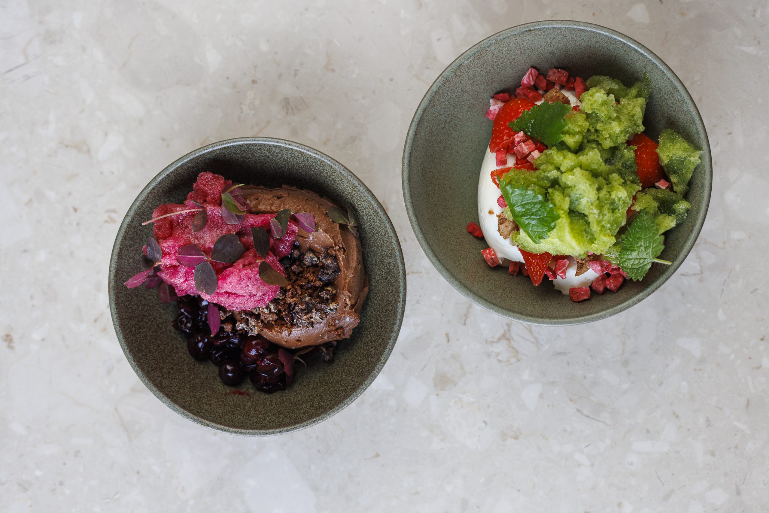 I finish the dining experience with a rich, flavourful chocolate mousse made from 70 percent chocolate and olive oil — also completely vegan, as Gísli points out — topped with cacao nibs, blackcurrants that nicely balance the bitterness, and an unexpected Sicilian touch to this Icelandic afternoon: arctic thyme granita.